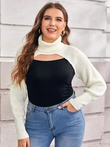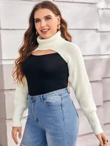 Plus Turtleneck Super Crop Sweater Without Cami Top