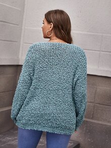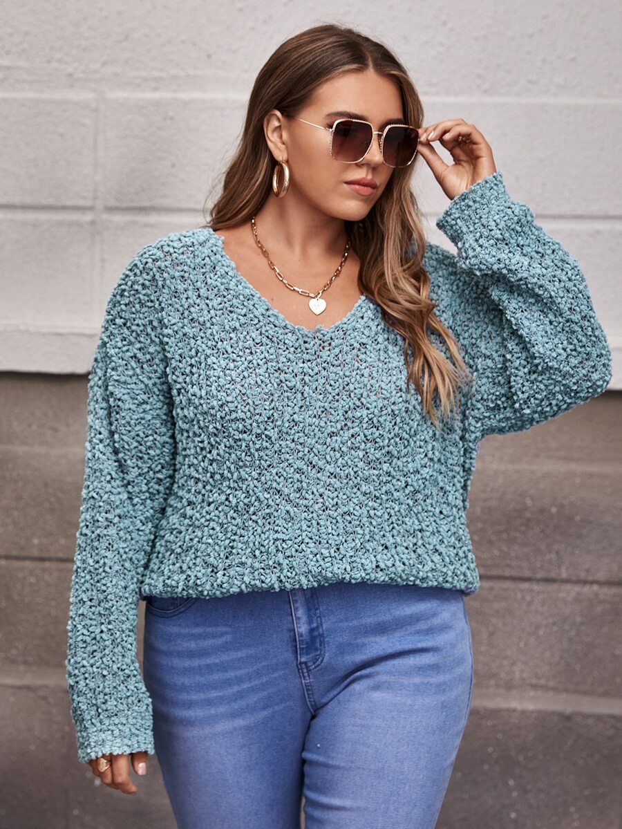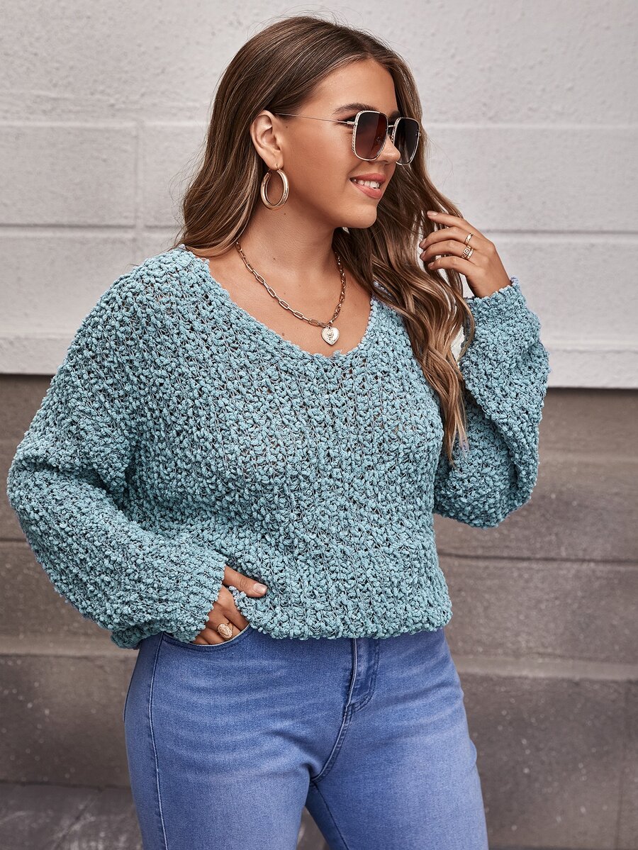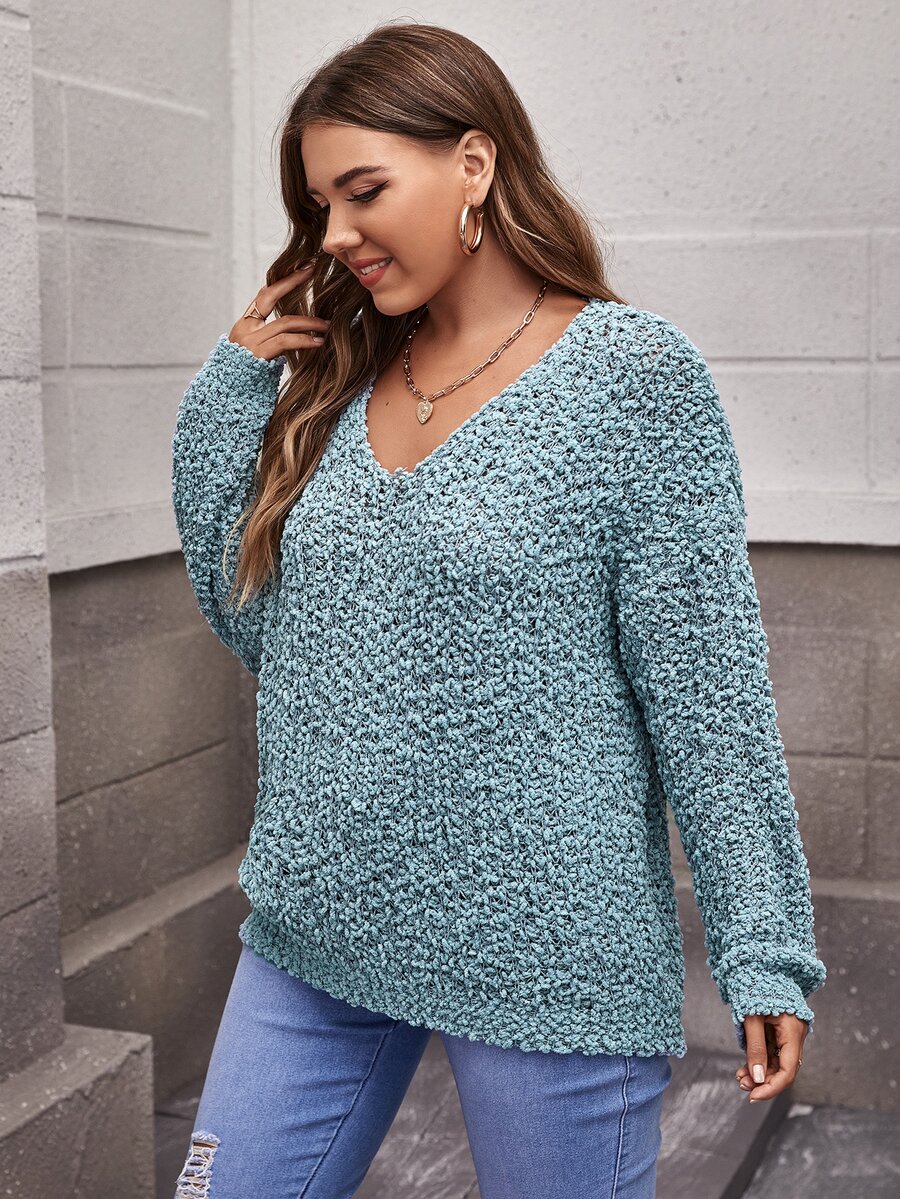 Plus V-neck Popcorn Knit Sweater