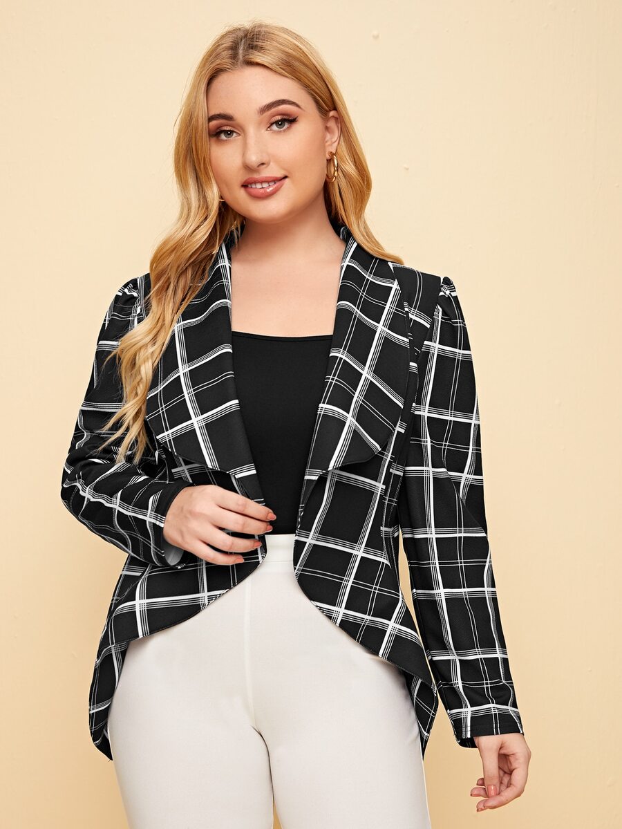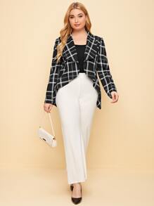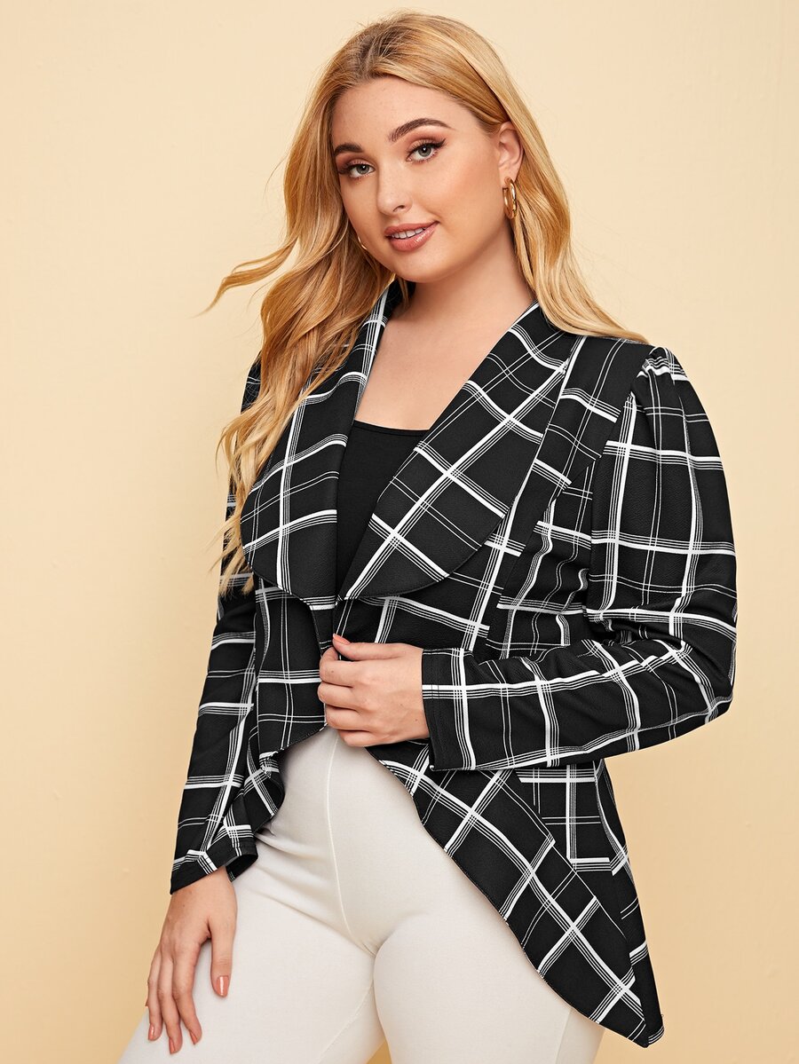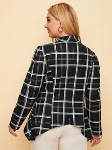 Plus Waterfall Collar Asymmetrical Hem Plaid Blazer