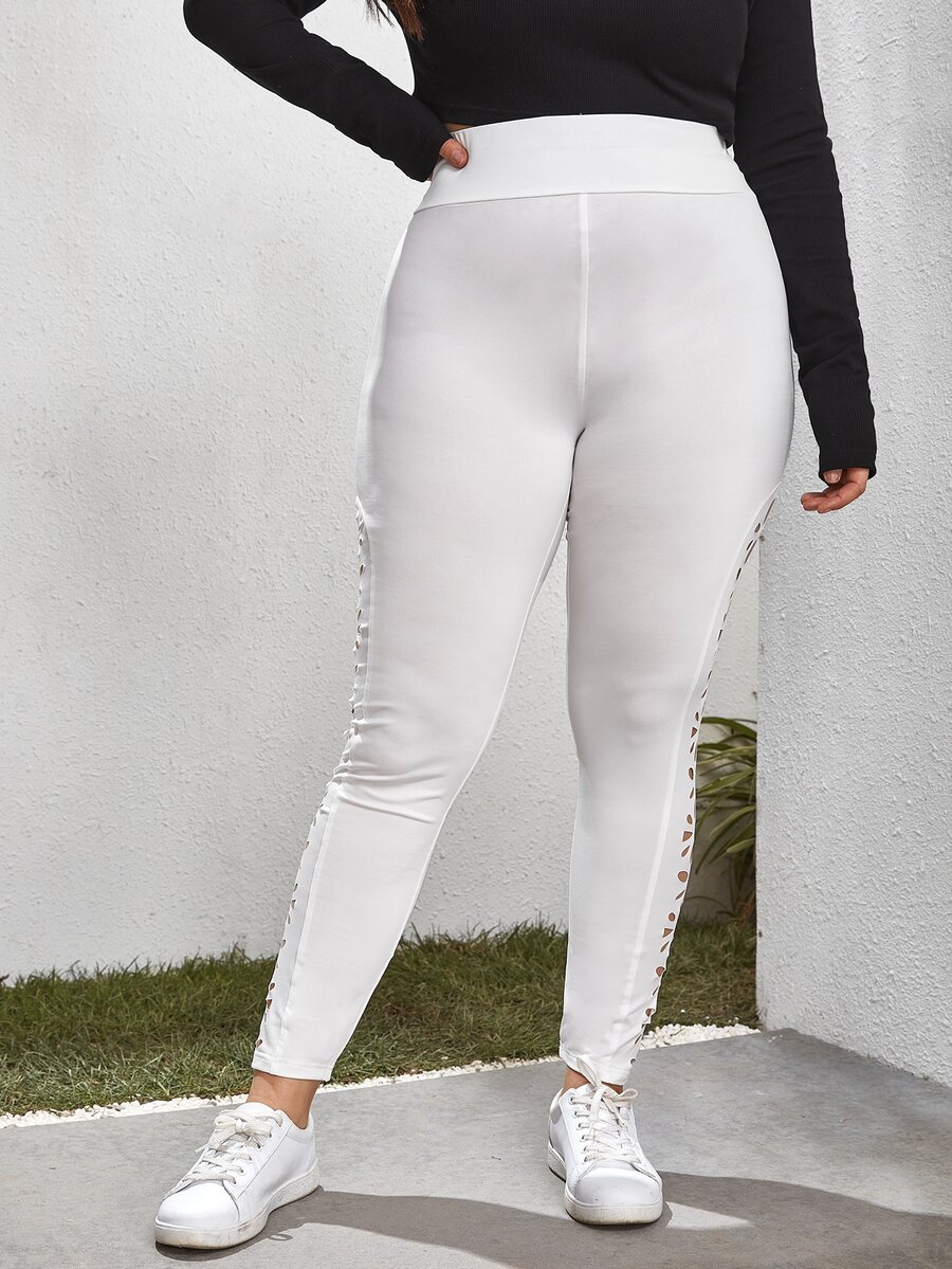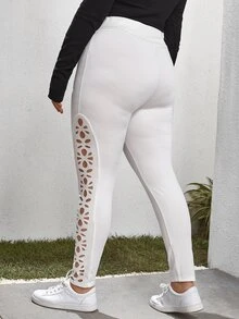 Plus Wide Waistband Laser Cut Side Leggings