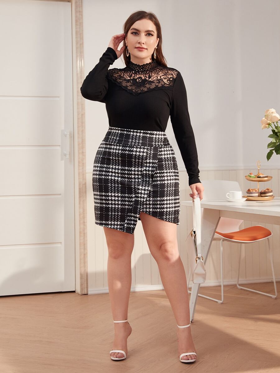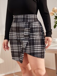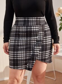 Plus Wide Waistband Wrap Asymmetrical Skirt