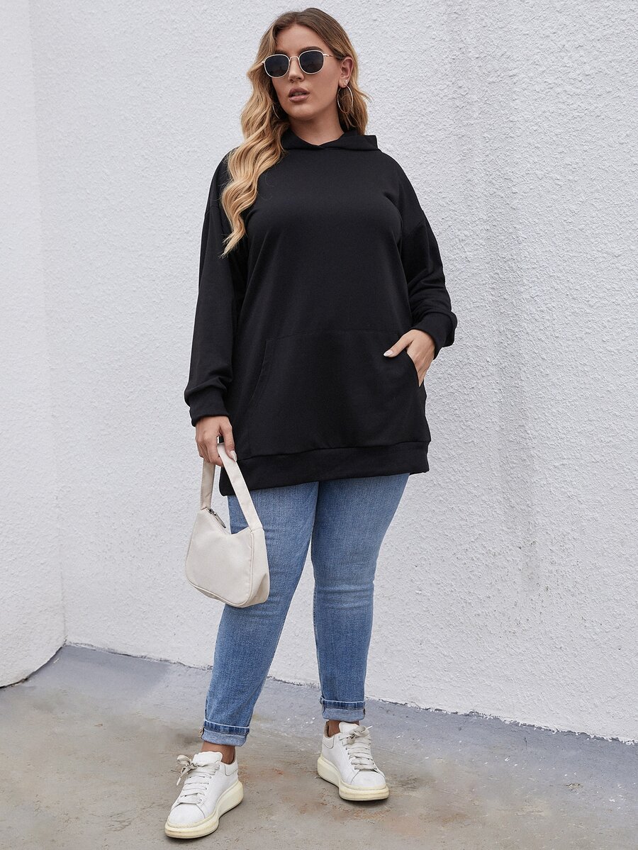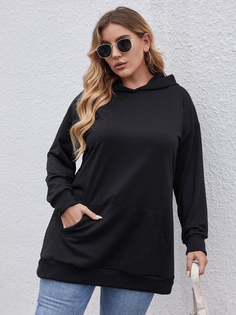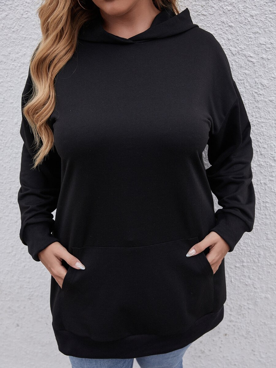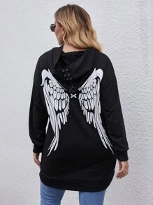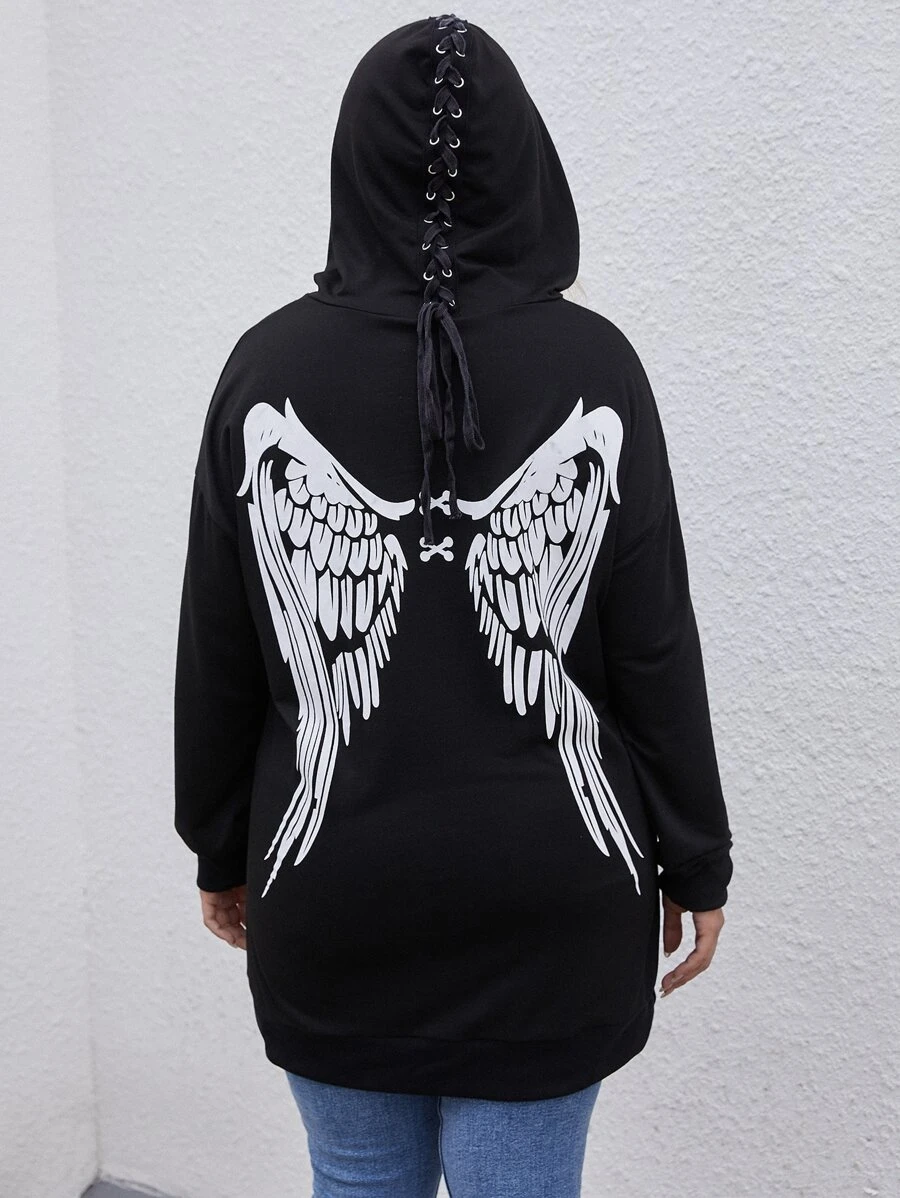 Plus Wing Print Grommet Lace Up Drop Shoulder Hoodie