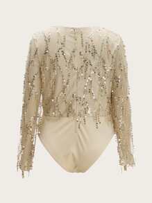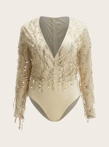 Plus Wrap V Neck Sequin-fringe Bodysuit