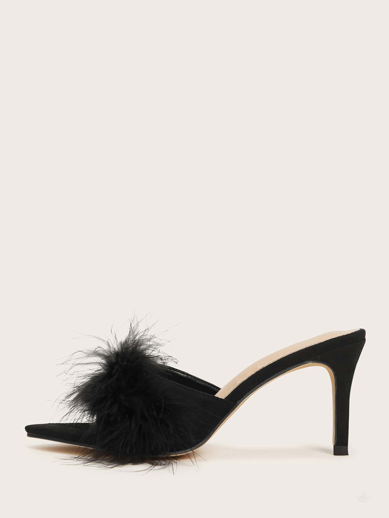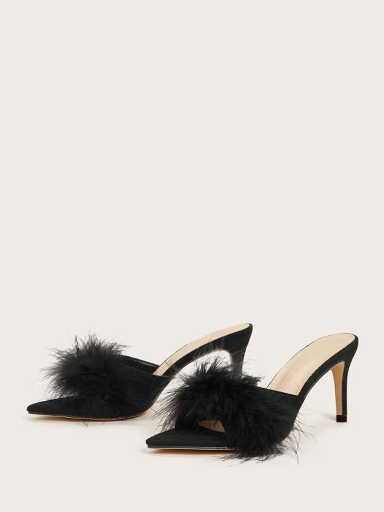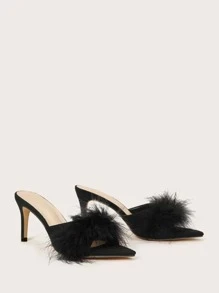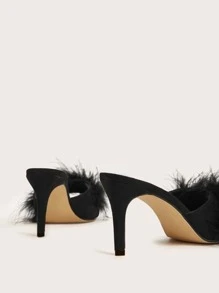 Plush Stiletto Heeled Mules