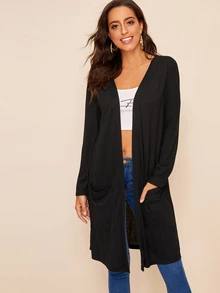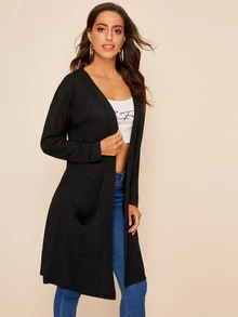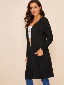 Pocket Front Open Placket Solid Coat
