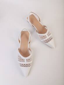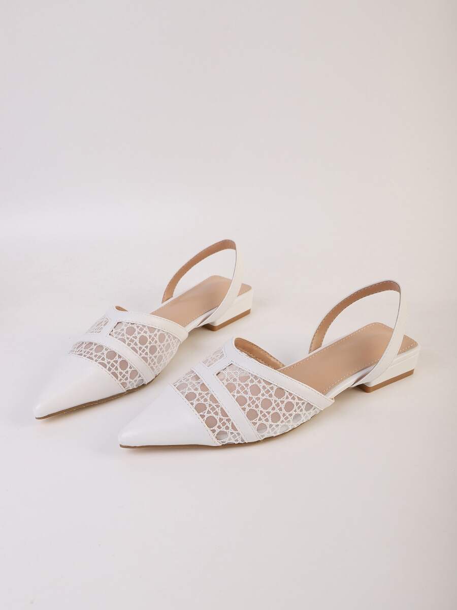 Point Toe Mesh Panel Slingback Flats
