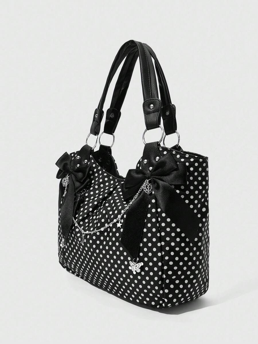 Kawaii Polka Dot Bow Decor Handbag, Suitable For Daily Commute And Travel