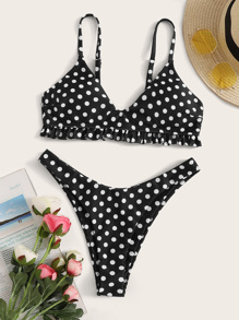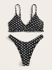 Polka Dot Frill Hem Bikini Set