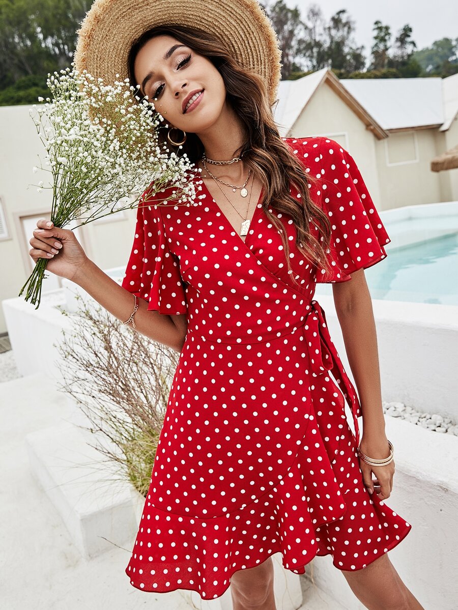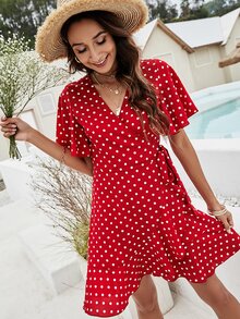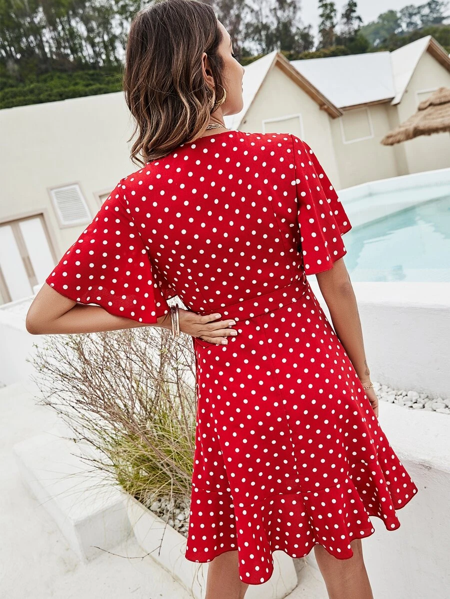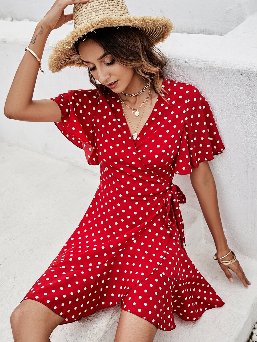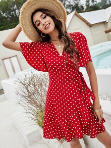 Polka Dot Knot Side Wrap Dress