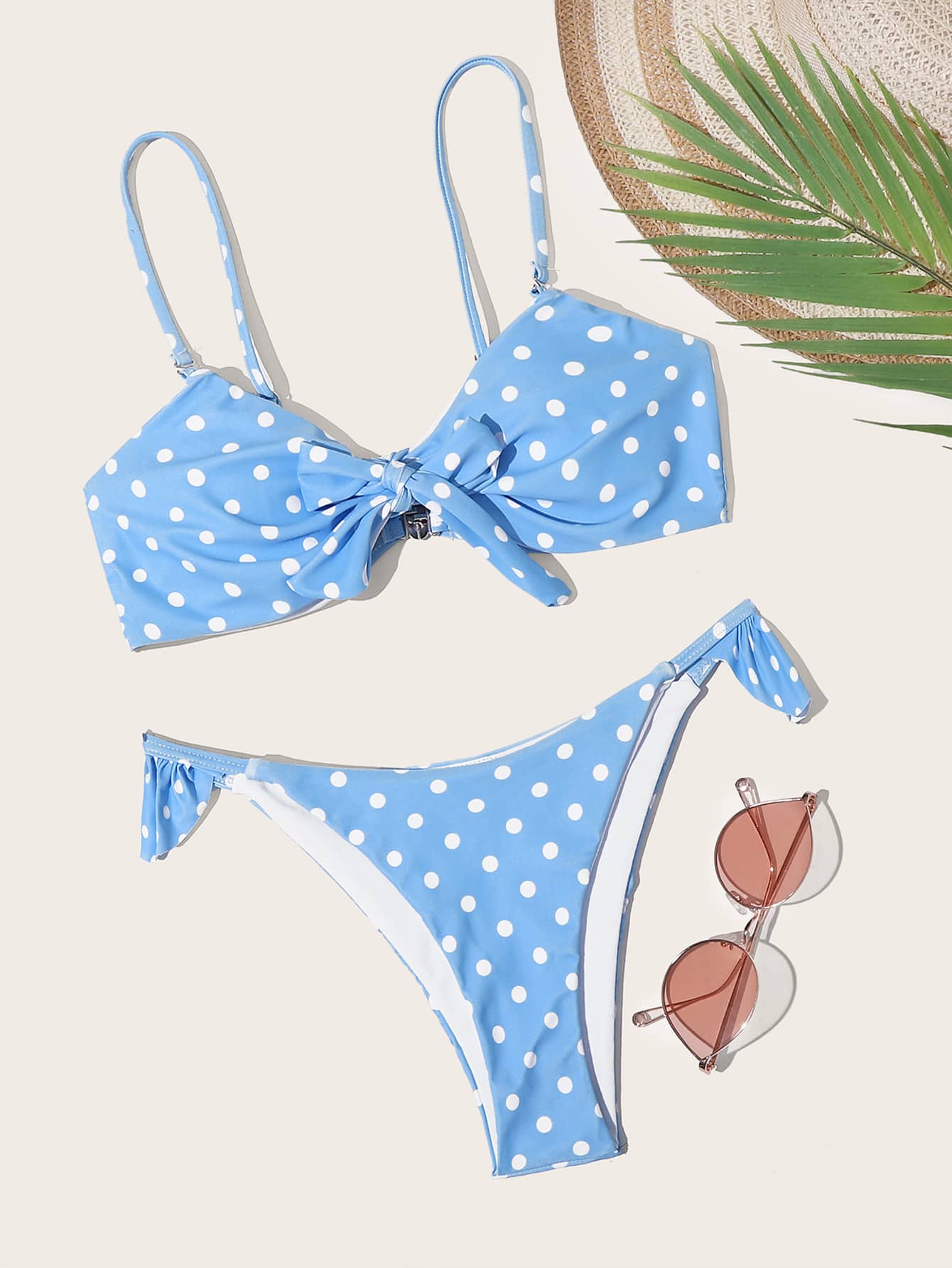 Polka Dot Ruffle Tanga Bikini Set Summer Beach