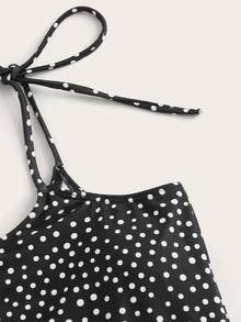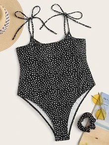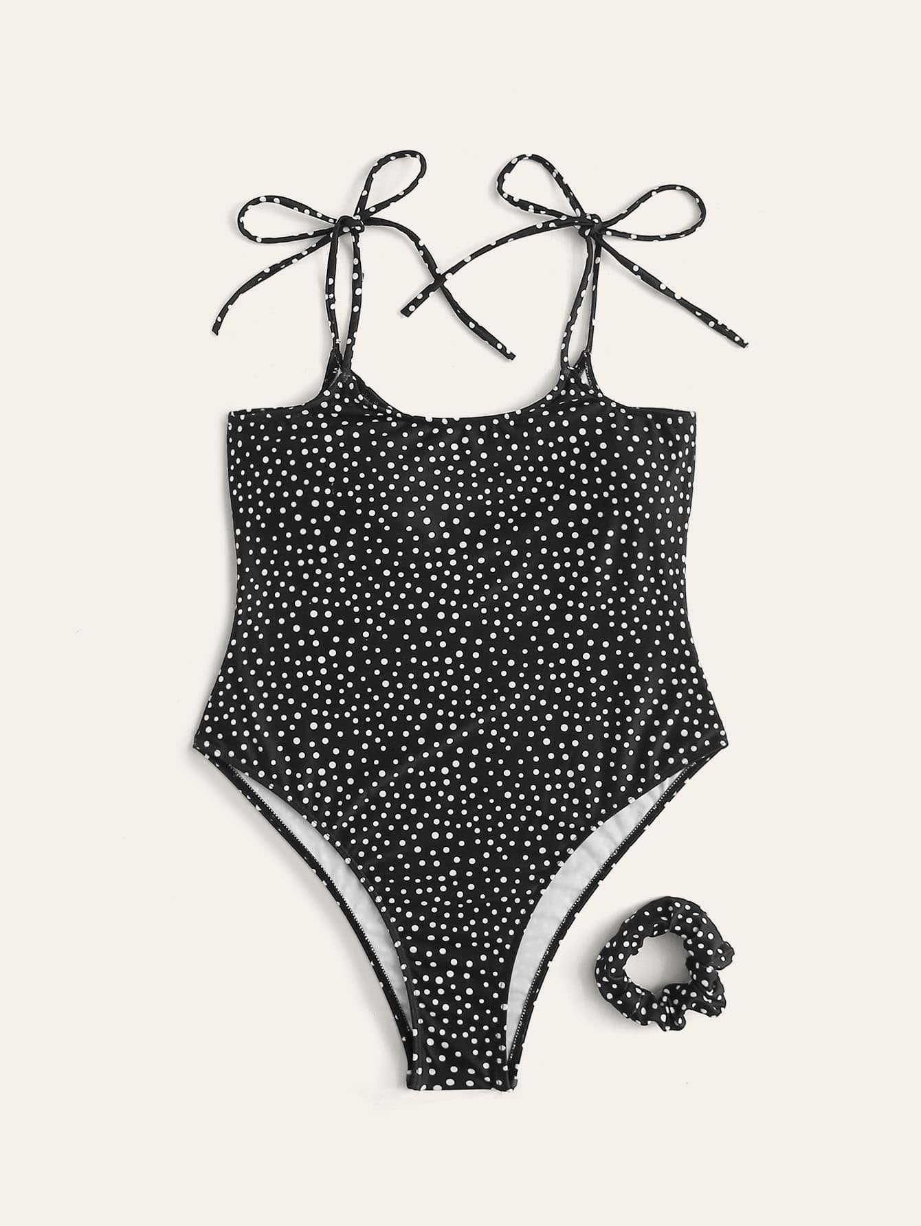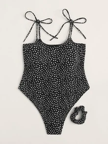 Polka Dot Tie Shoulder One Piece Swimwear & Scrunchie