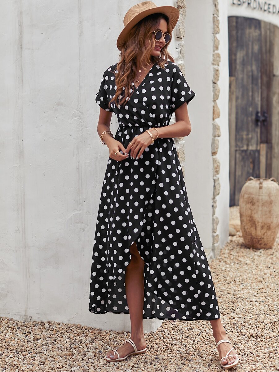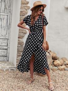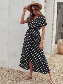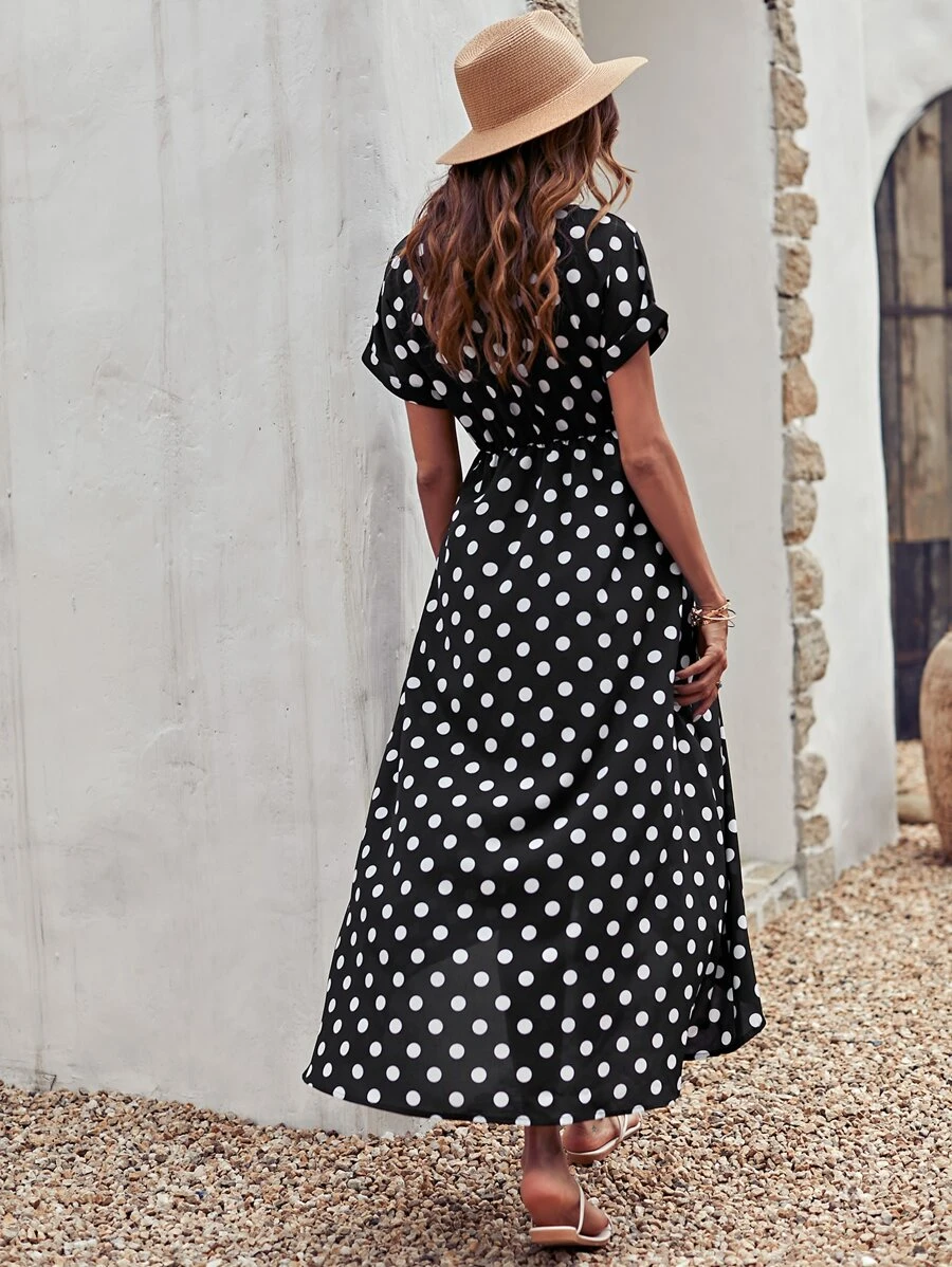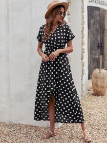 Polka Dot Tulip Hem Dress Without Belt