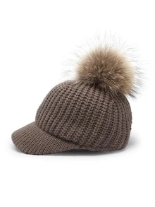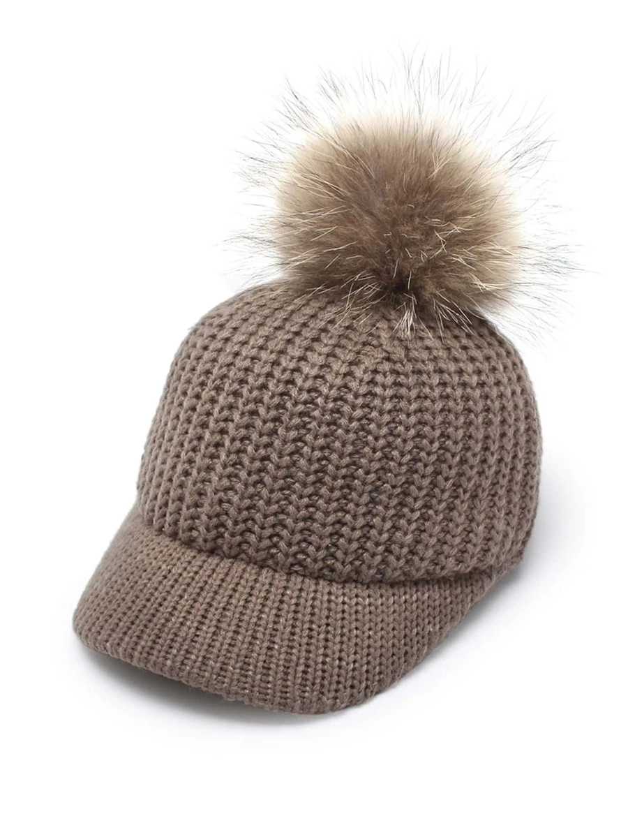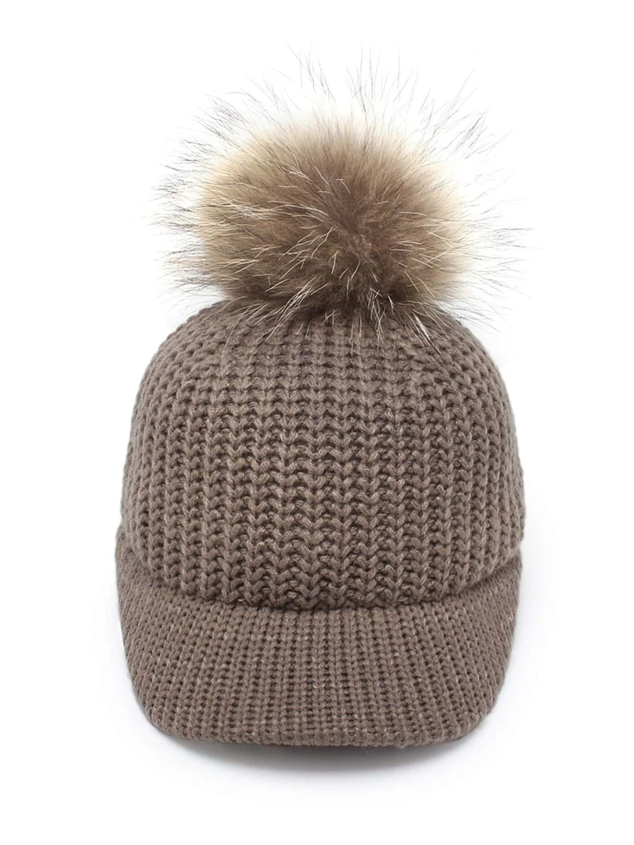 Pom Pom Decorated Knit Baseball Cap