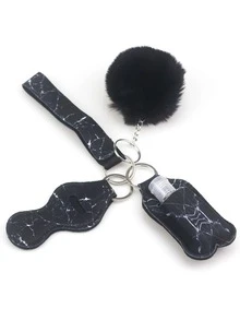 Pom Pom & Hand Sanitizer Bottle Holder Decor Keychain