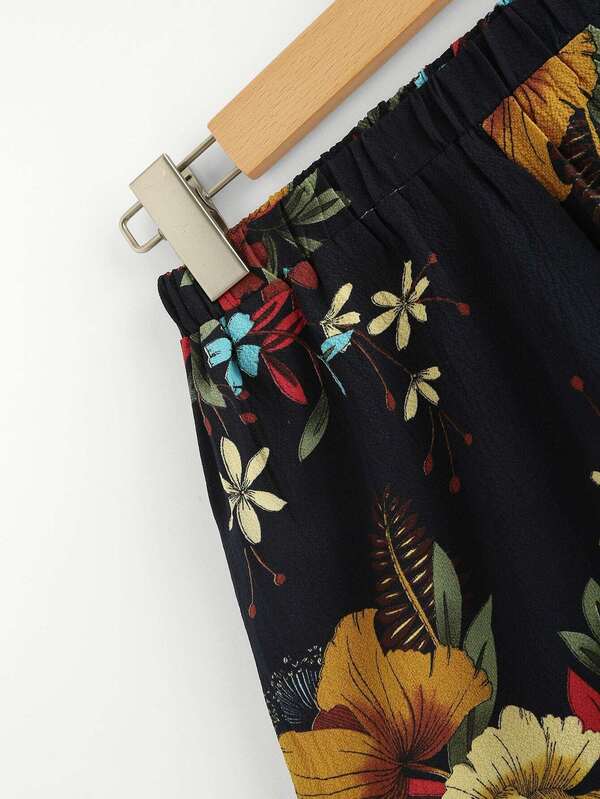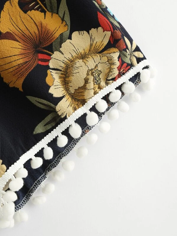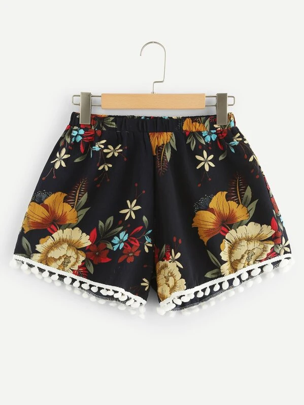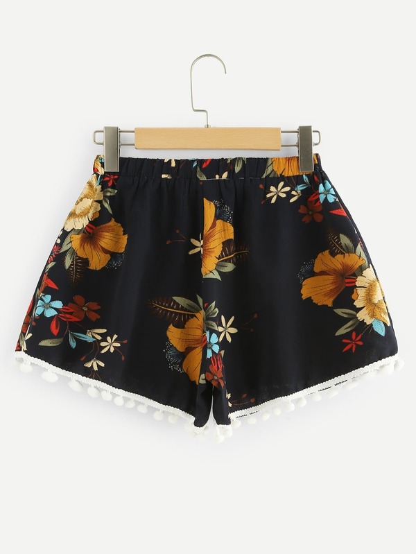 Pom Pom Trim Floral Shorts