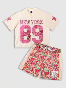 Casual 2pcs Men's Jersey Street Floral Print T-Shirt And Shorts Set
