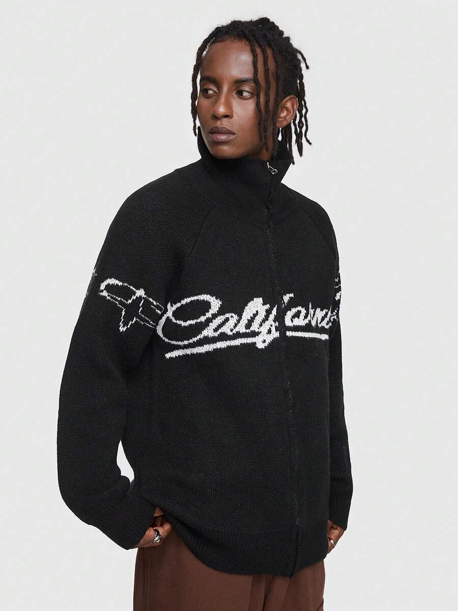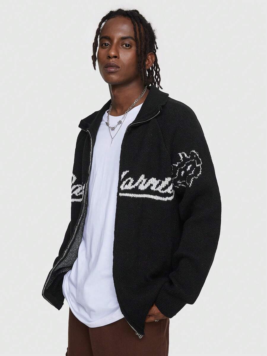 Prep Guys Letter Pattern Zip Up Raglan Sleeve Cardigan