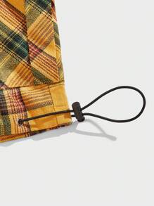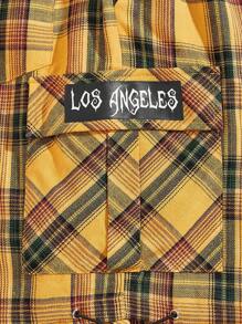 Prep Guys Plaid Print Letter Patched Detail Flap Pocket Drawstring Waist Shorts