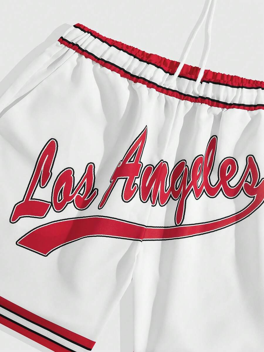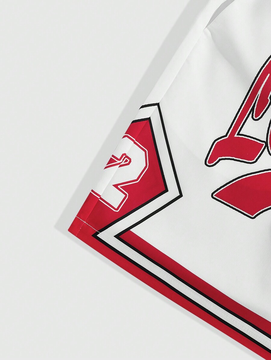 Prep Men Casual Loose Fit Summer Shorts With Letter Printing And Drawstring Waist, School