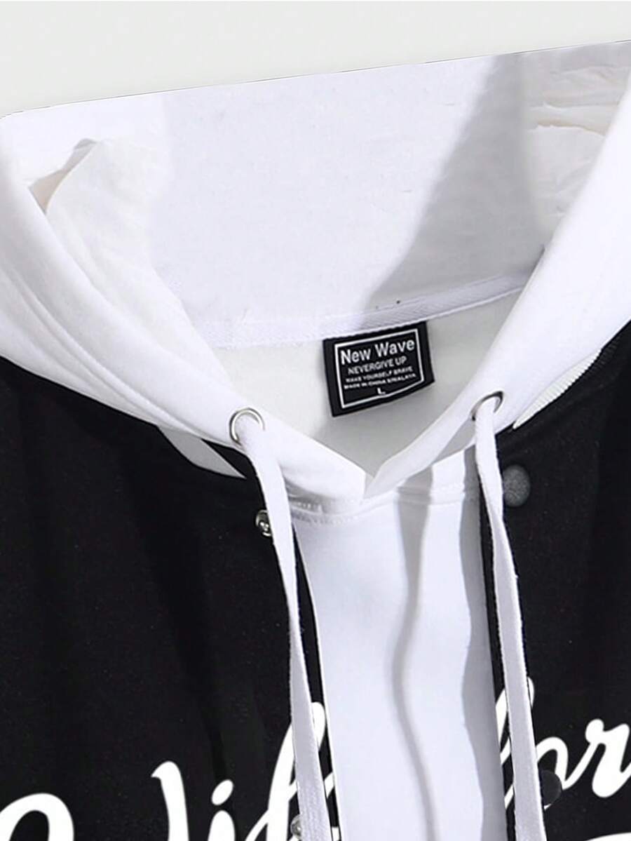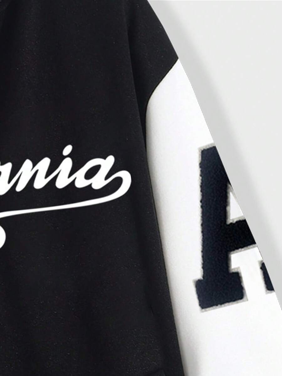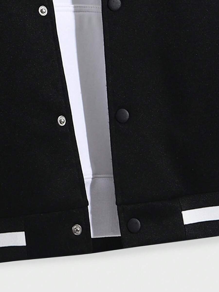 Prep Men Letter Graphic Two Tone Varsity Jacket Without Hoodie