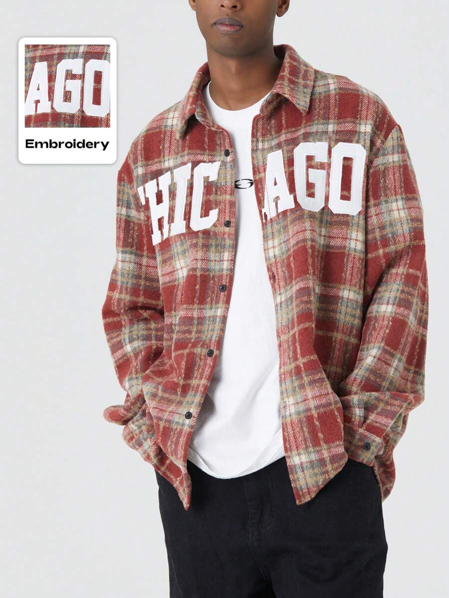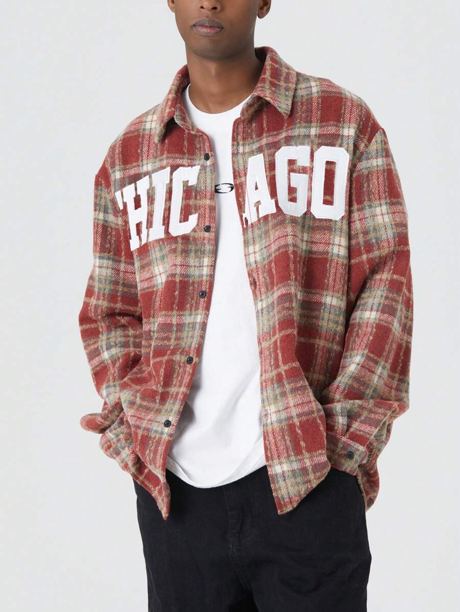 Prep Men's Button Front Long Sleeve Letter Print Casual Jacket