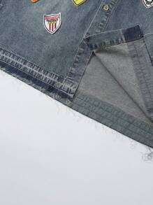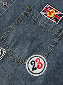 Prep Men's Casual Denim Top With Dropped Shoulders, Loose Fit, Patchwork Pockets, Summer Street Wear