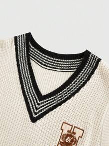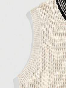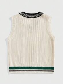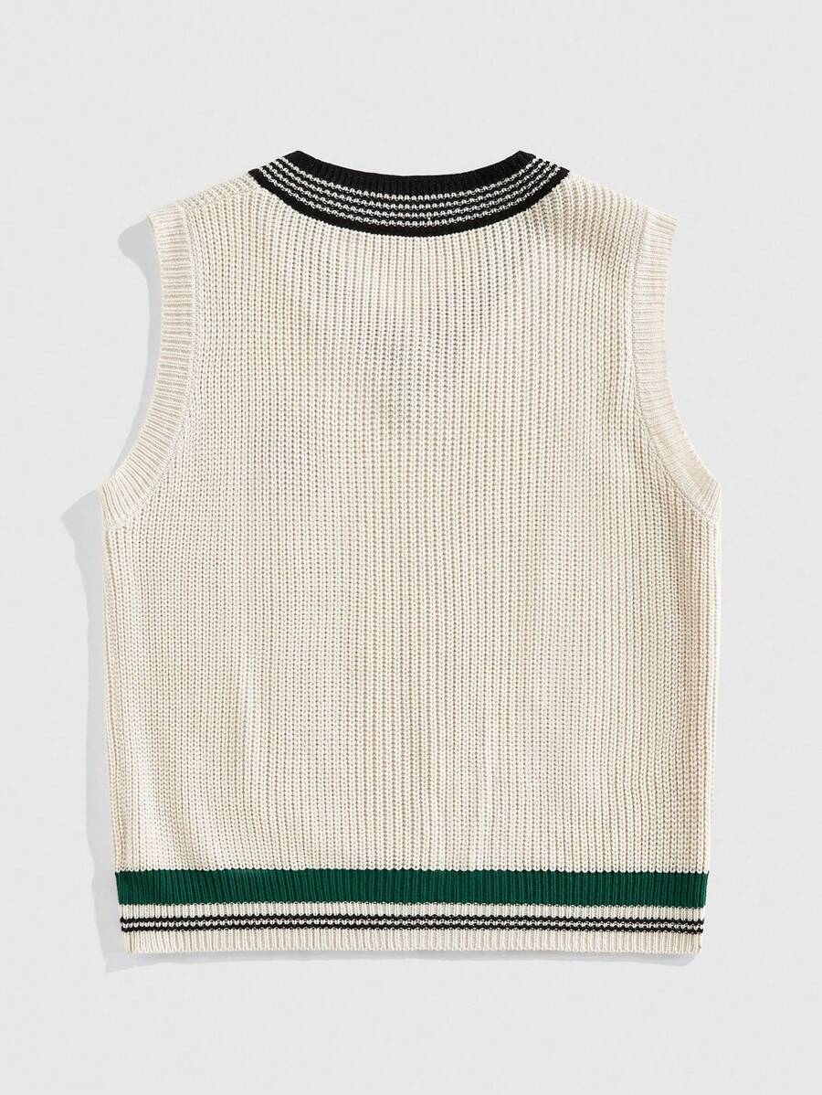 Prep Men's Casual V-Neck College Striped Knit Vest With Letter Embroidery