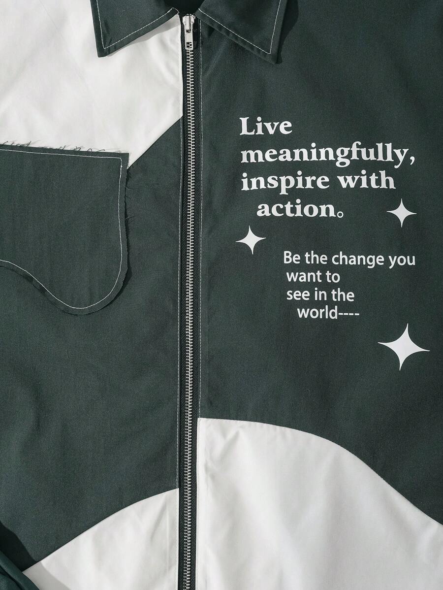 Prep Men's Color Blocking Zipper Decor Short Sleeve Shirt, Spring/Summer College Style