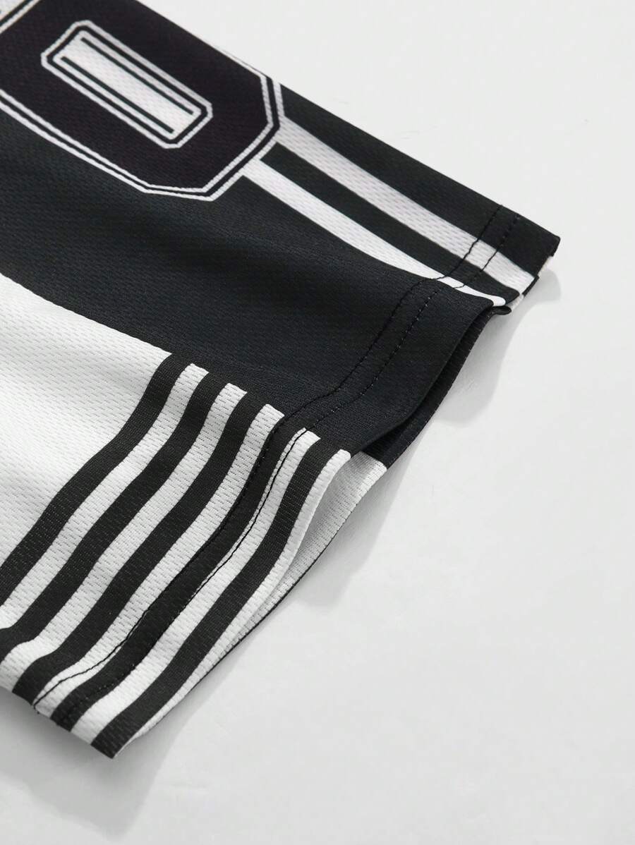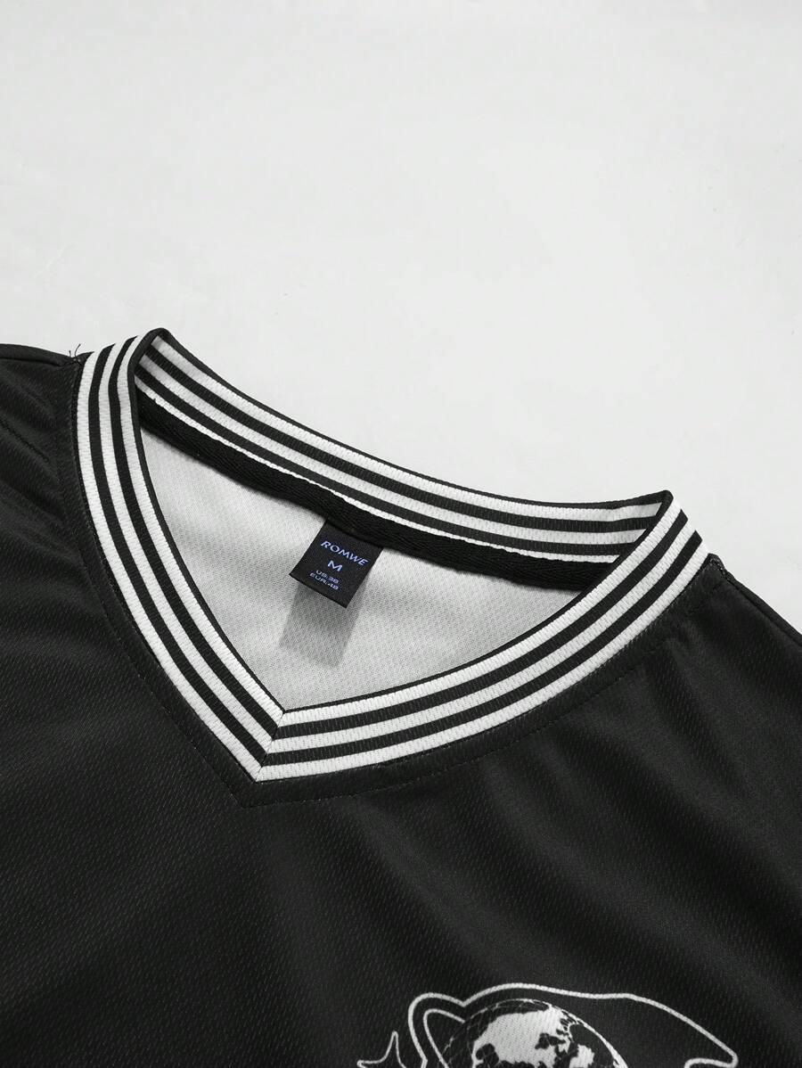 Prep Men's Contrast Color Letter & Flame Print Sports Jersey T-Shirt