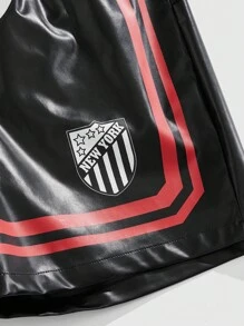 Prep Men's Elastic Waist Drawstring Loose Letter Casual Summer Shorts, Contrast Color