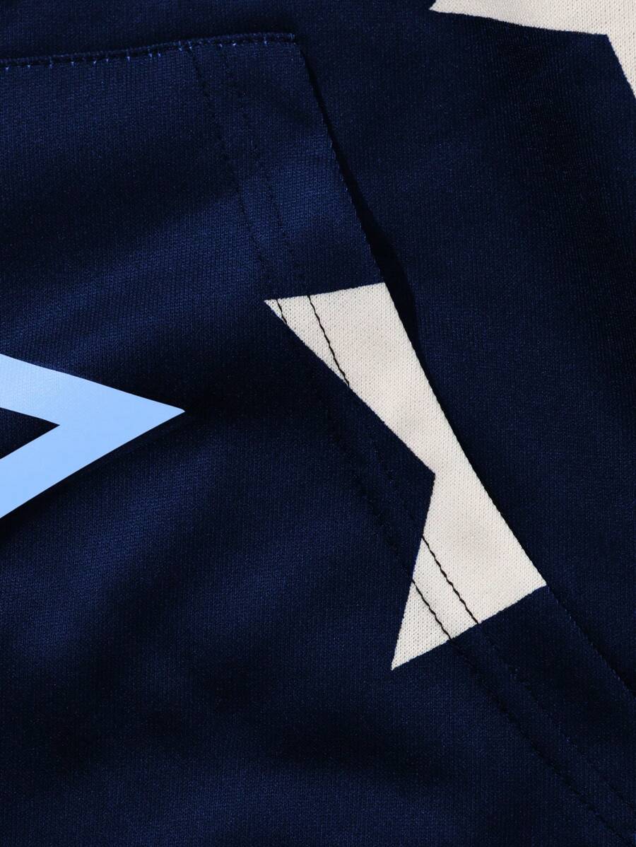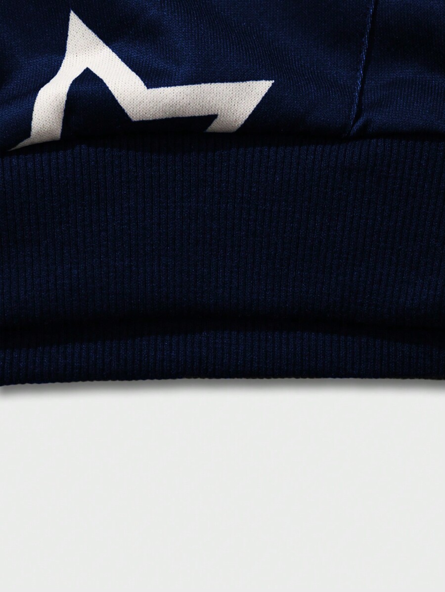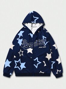 Prep Men's Hooded Sweatshirt With Kangaroo Pocket, Zipper Closure, Letter & Star Pattern
