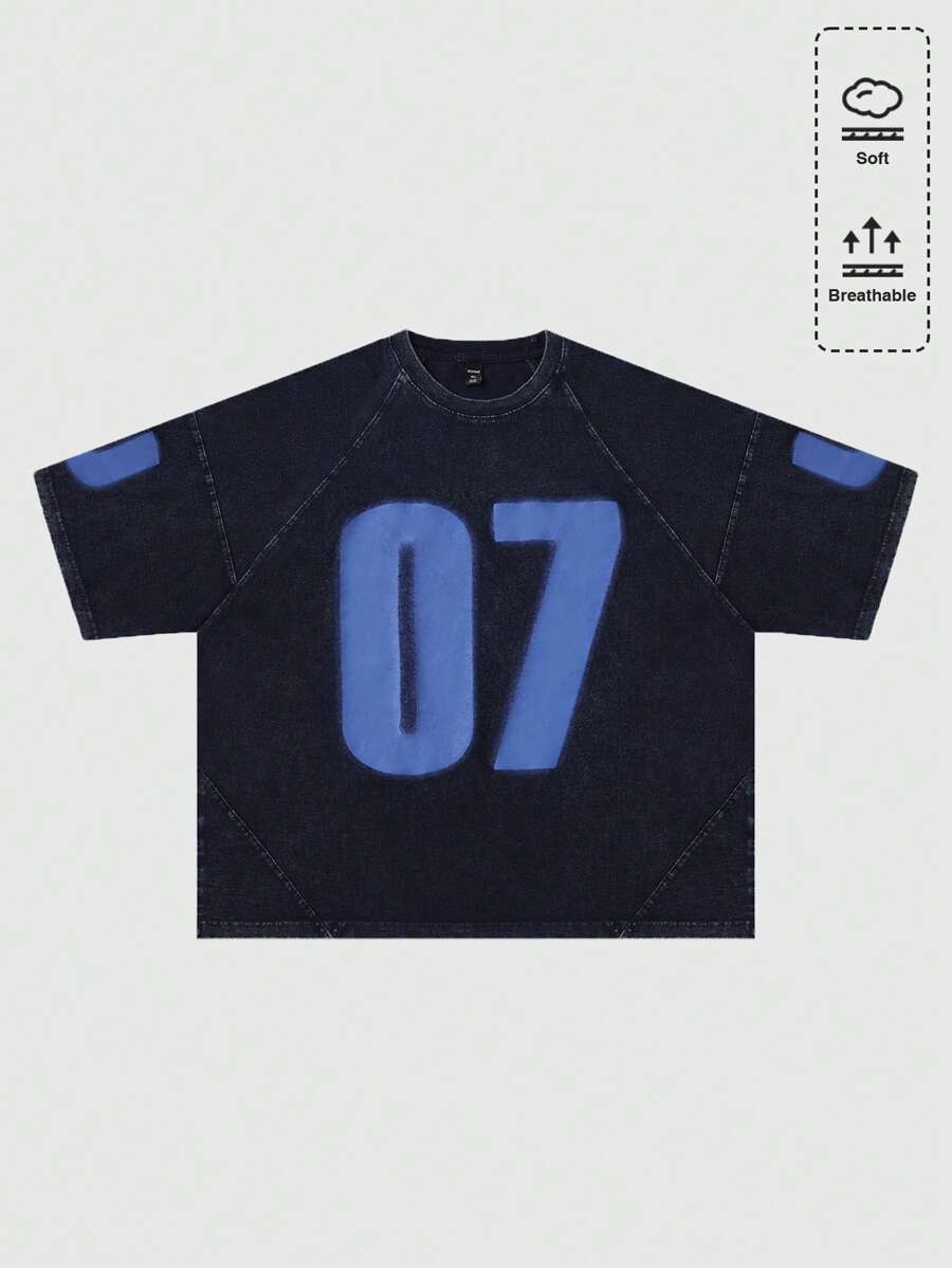 Street Life Men's Jersey Distressed Patchwork Digit Print Short Sleeve T-Shirt, Vintage