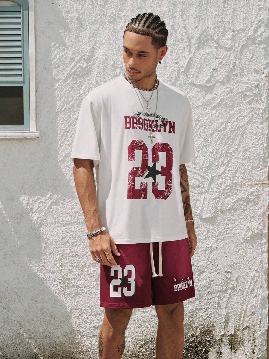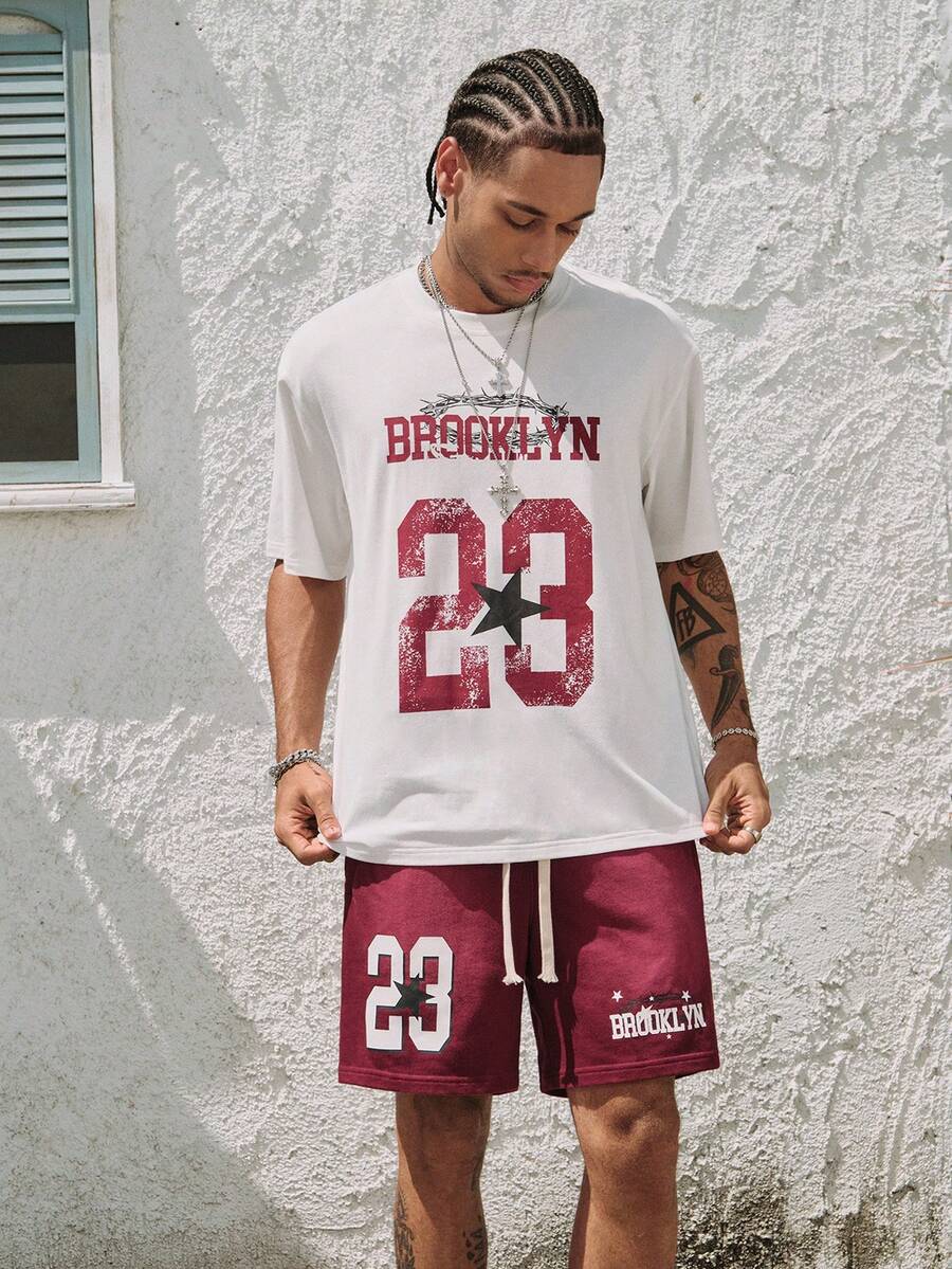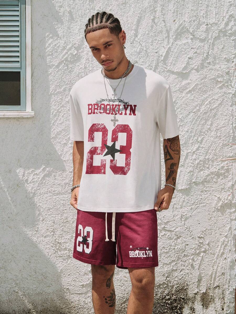 Prep Men's Jersey Letter Print Short Sleeve T-Shirt And Drawstring Waist Shorts Set