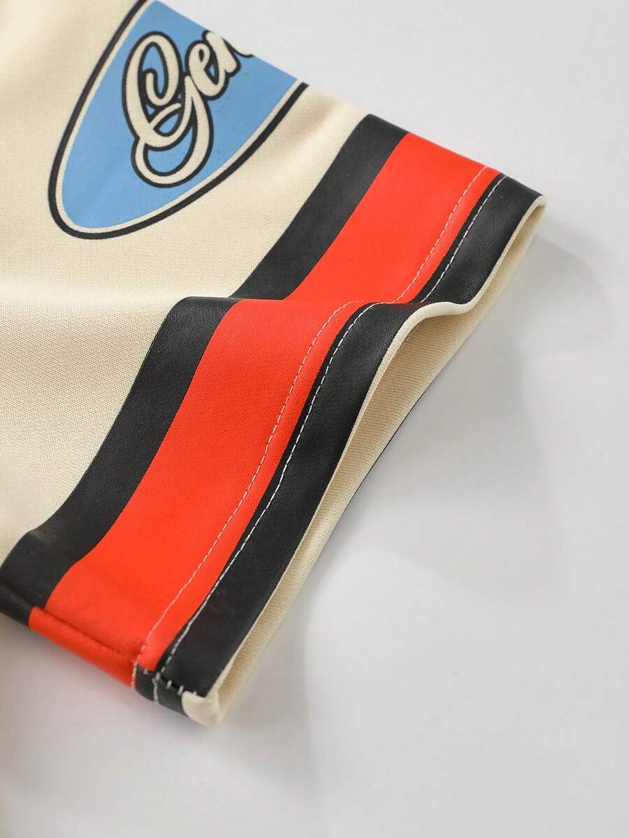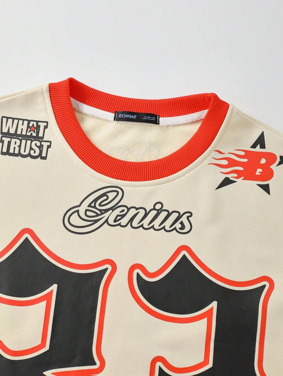 Prep Men's Jersey Loose Short Graphic T-Shirt Set, Retro Street Style
