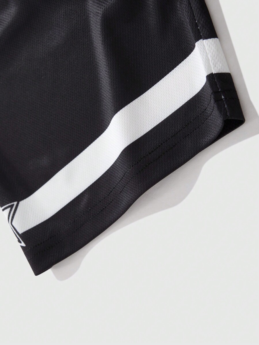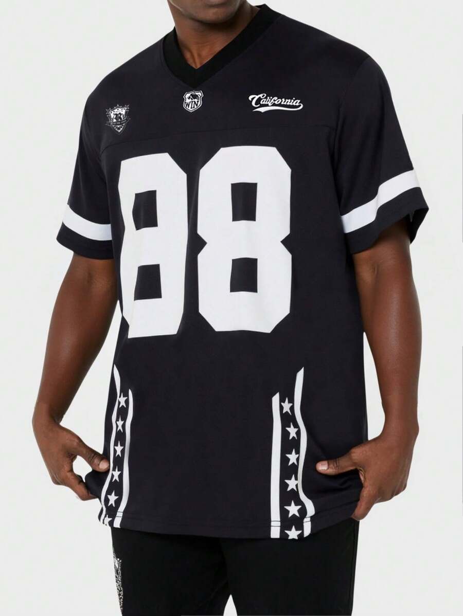 Prep Men's Jersey Solid Color Patchwork V-Neck Short Sleeve Numeric Print Minimalist Football Jersey Style Top
