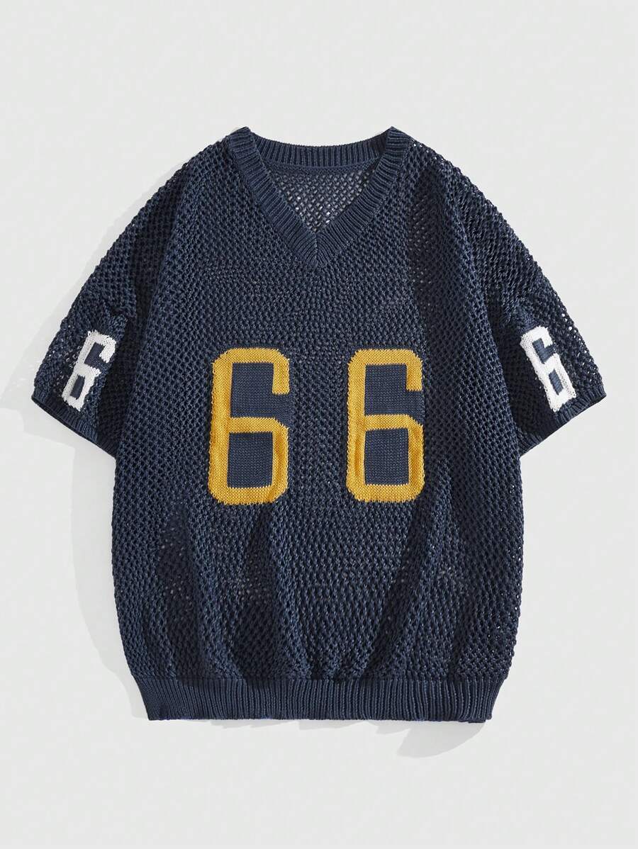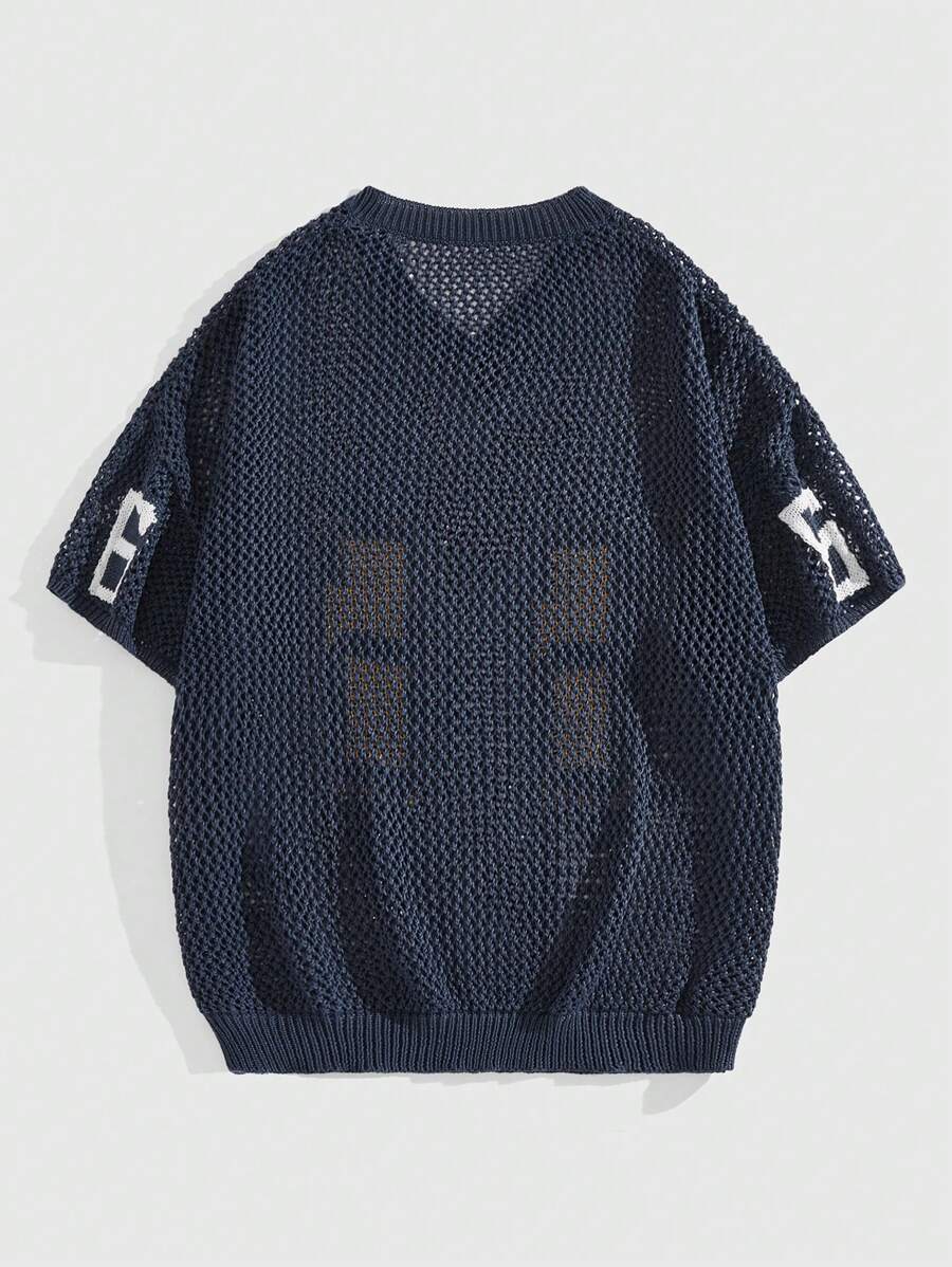 Prep Men's Knitted Short Sleeve Digital Jacquard Sweater, Suitable For Daily Wear In Spring And Summer