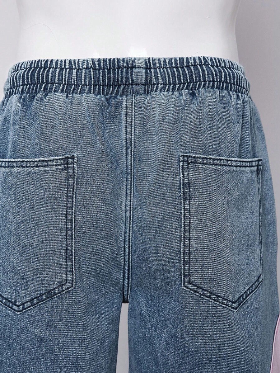 Prep Men's Letter Graphic Drawstring Waist Loose Casual Denim Shorts