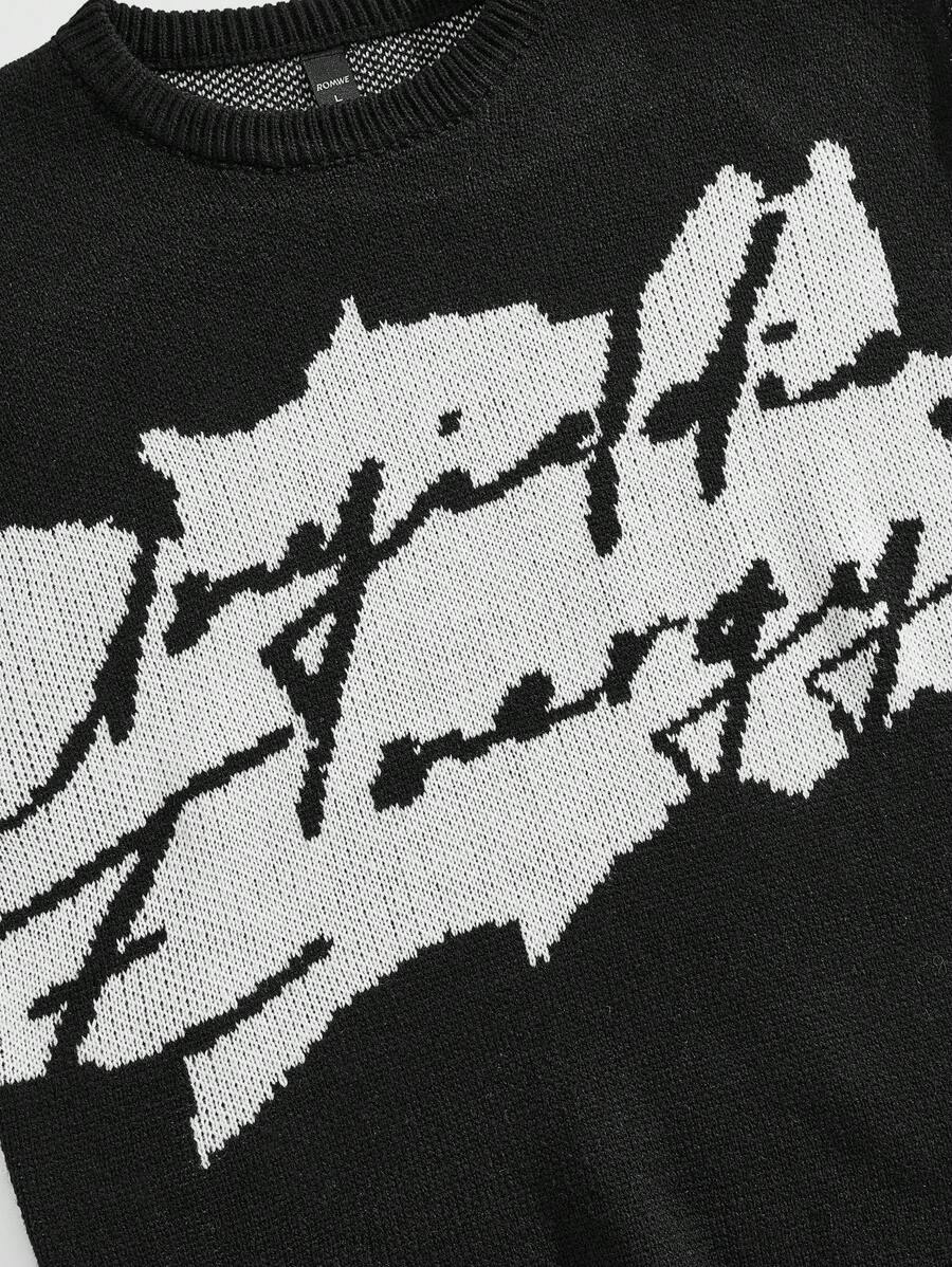 Prep Men's Letter Pattern Round Neck Long Sleeve Casual Pullover Sweater, Autumn/Winter