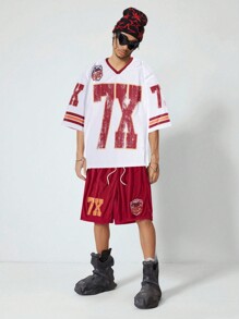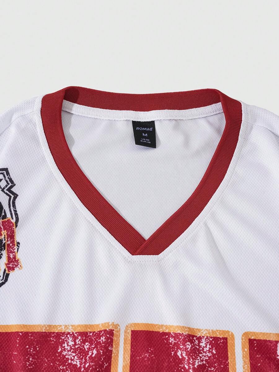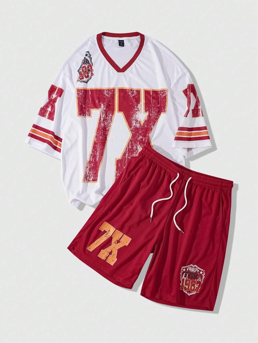 Prep Men's Letter Print V-Neck Short Sleeve Casual T-Shirt And Drawstring Waist Shorts Set
