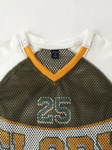 Prep Men's Mesh Patchwork Letter Print Short Sleeve Sports T-Shirt And Drawstring Waist Shorts Set
