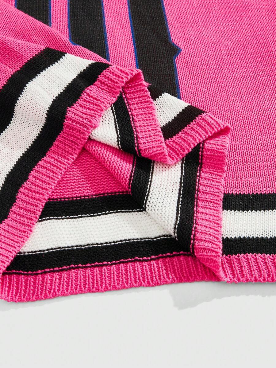 Men's Preppy Contrast Color Striped Letter Print Short Sleeve Knit Sweater
