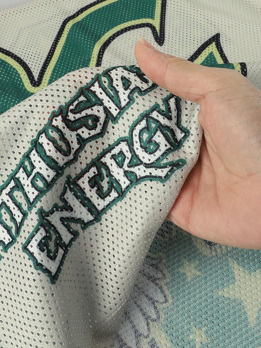 Prep Men's Shiny Fabric & Mesh Patchwork Sports Short Sleeve Set, Athletic Jersey Suit