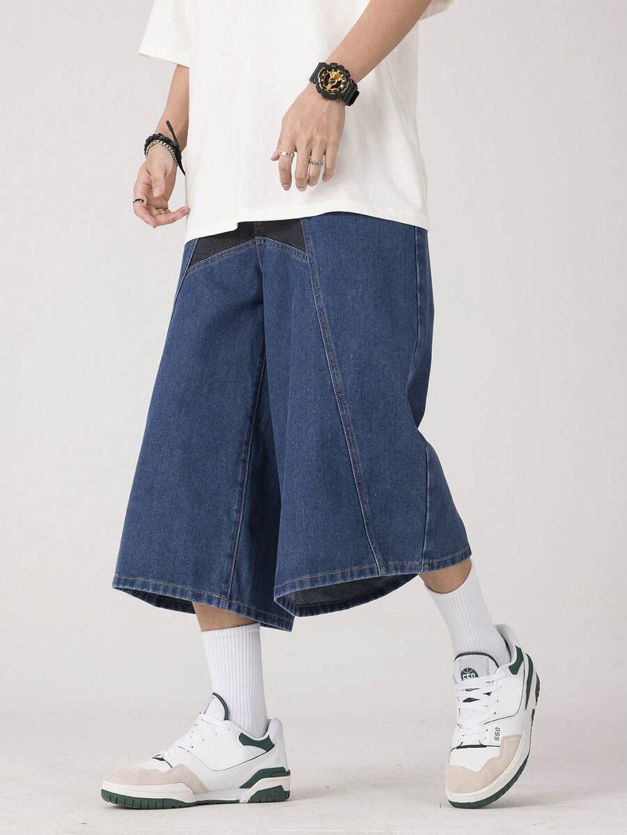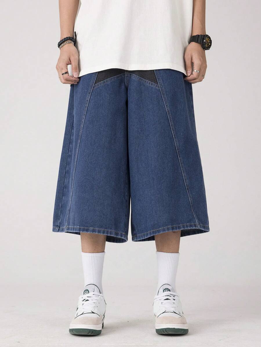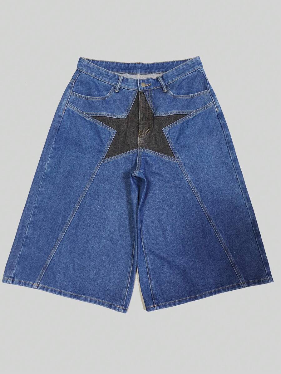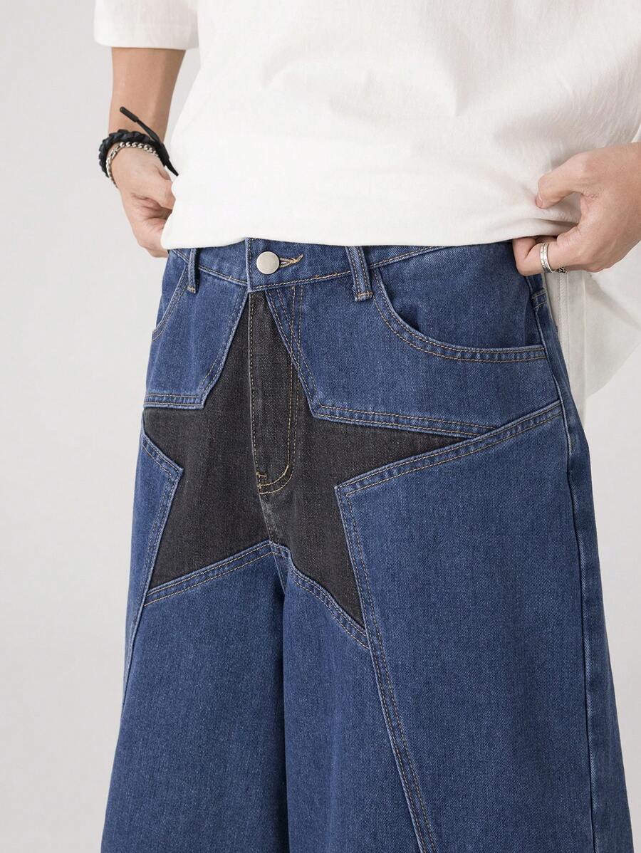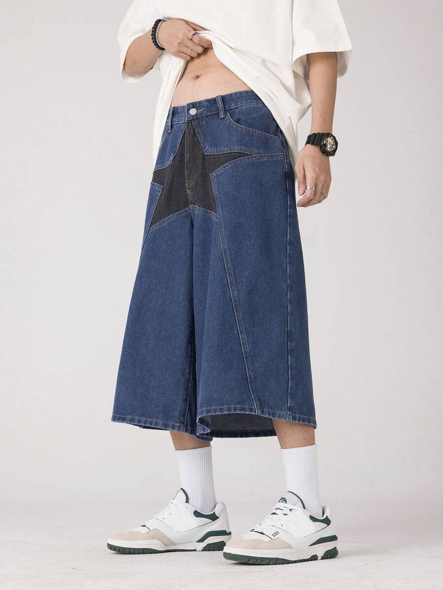 Prep Men's Star Applique Baggy Capris Jeans, Suitable For Spring And Summer Daily Wear, School