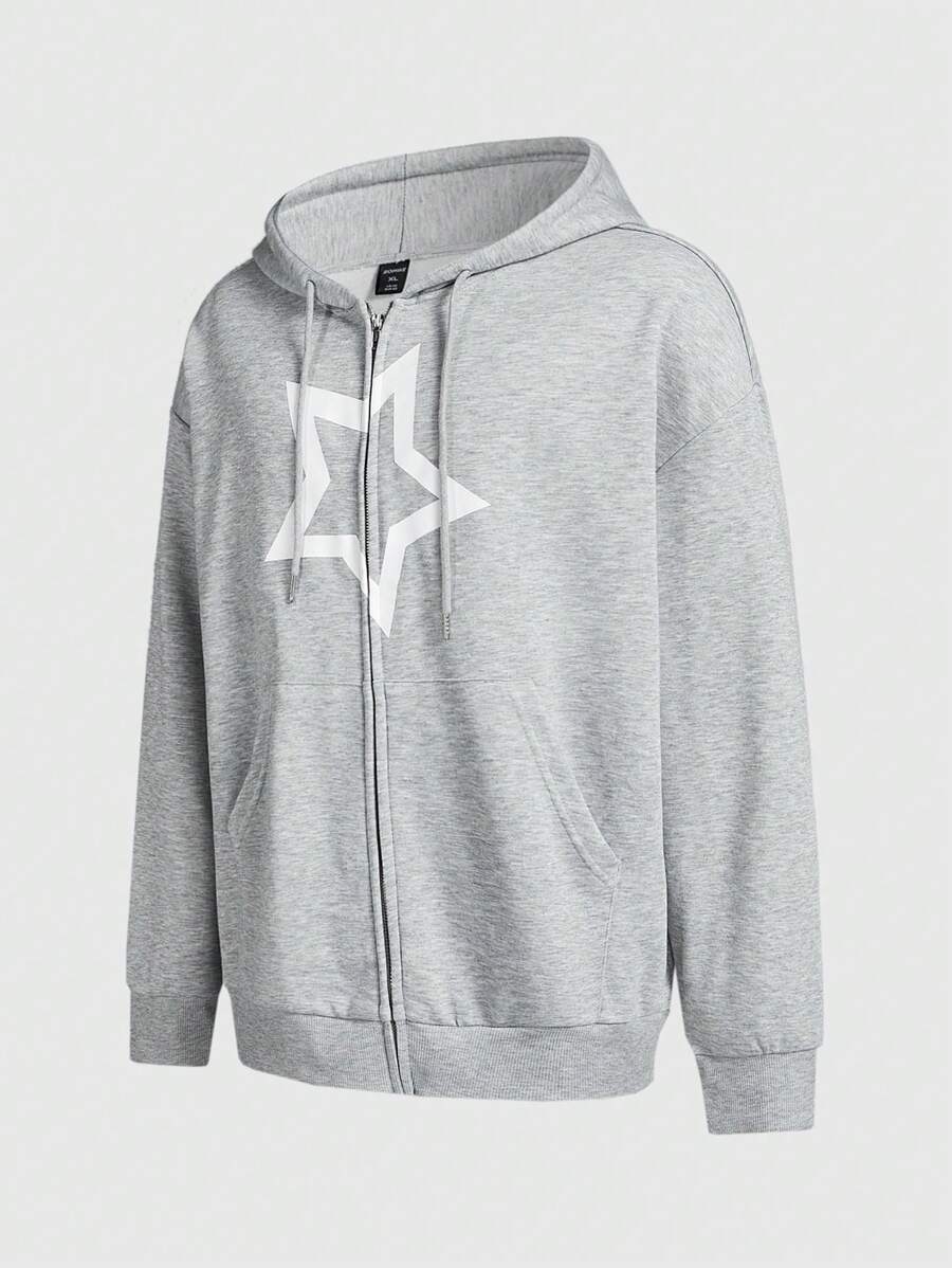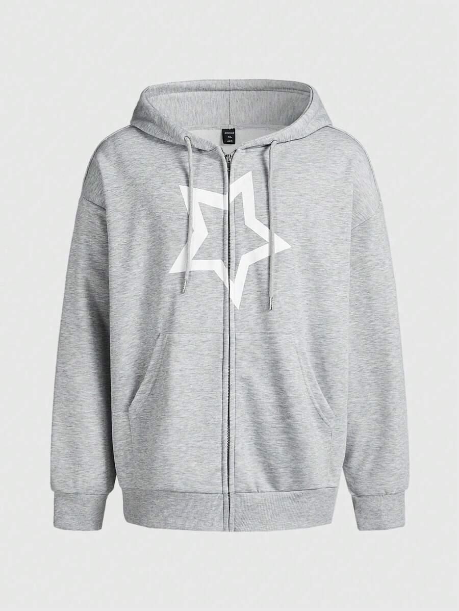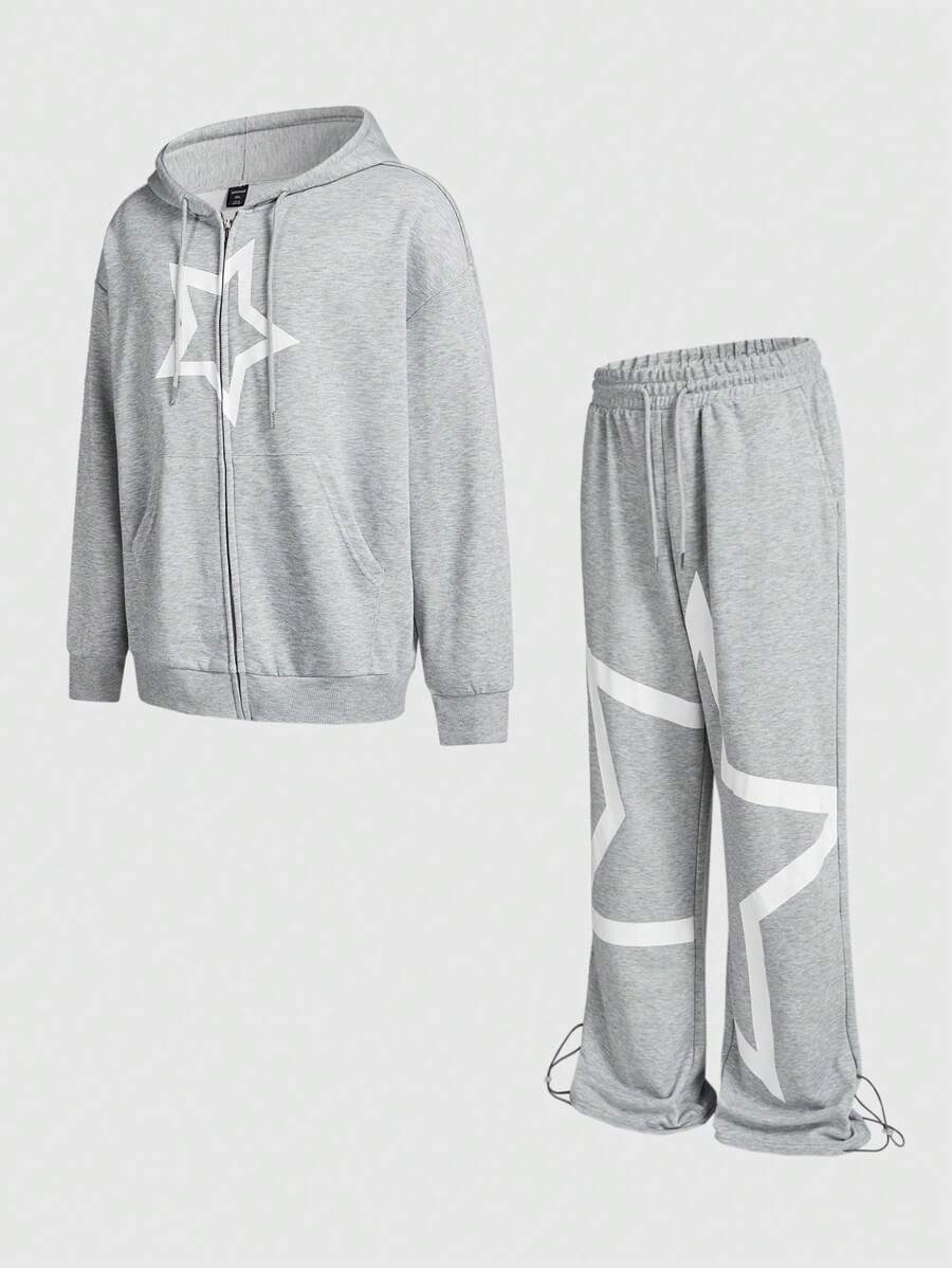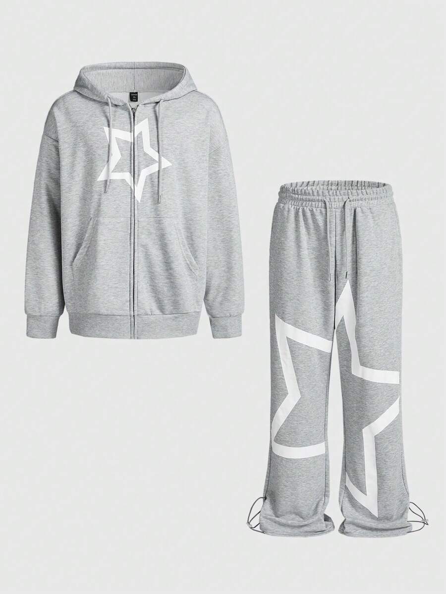 Prep Men's Star Print Zip Closure Hoodie And Sweatpants Casual Suit