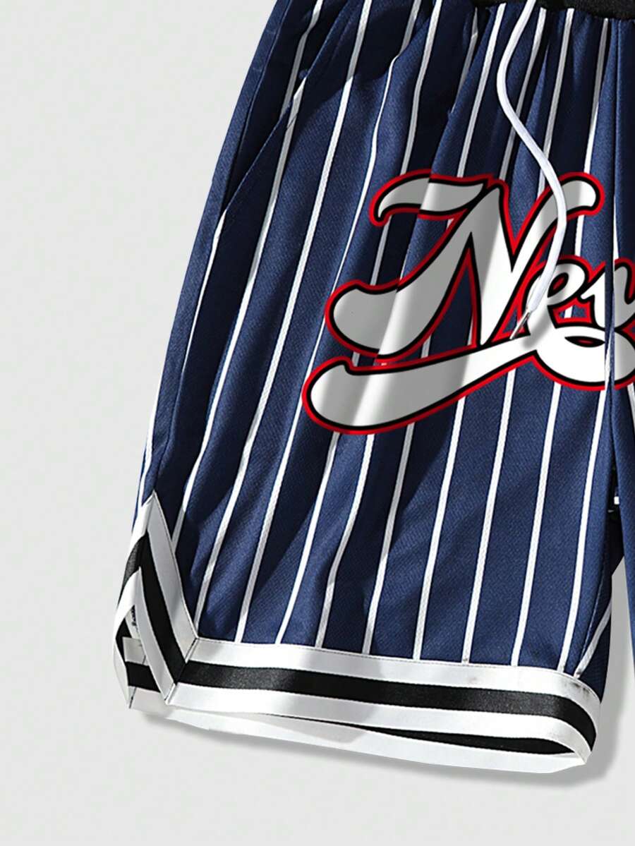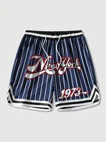 Prep Men's Striped & Printed Drawstring Casual Basketball Mesh Shorts, Versatile