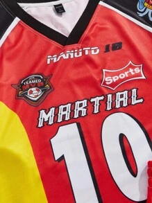 Prep Men's Summer Street Jersey Casual Sports Numeric & Letter Print Raglan T-Shirt And Drawstring Waist Shorts Set