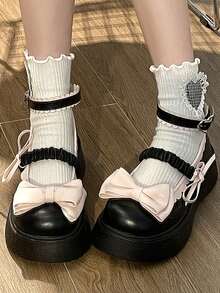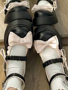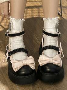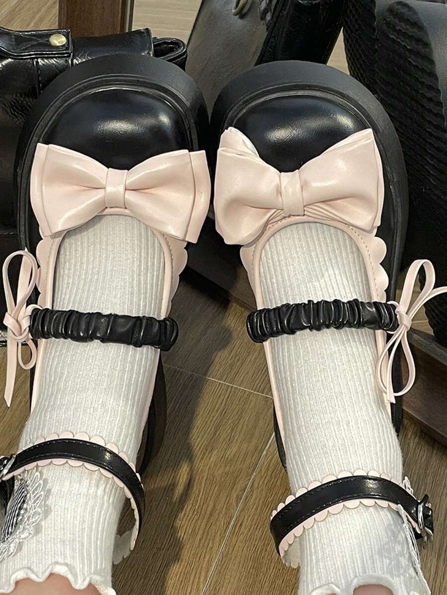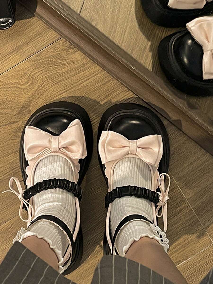 Preppy Shoes For Women, Bow Decor Flatform Mary Jane Shoes