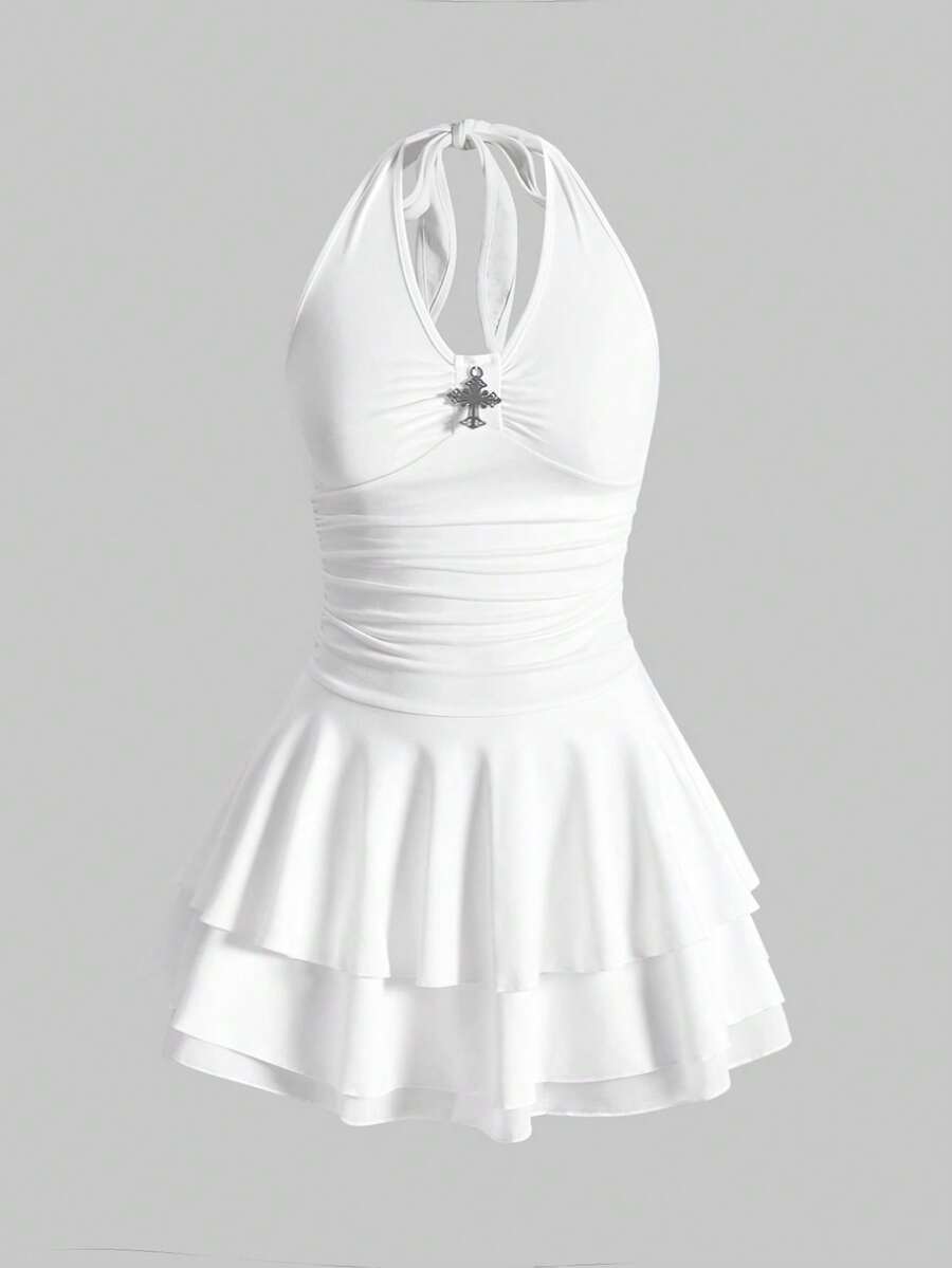 J-Fashion Punk Cross Decor Multi-Layer Necklace Mini Dress