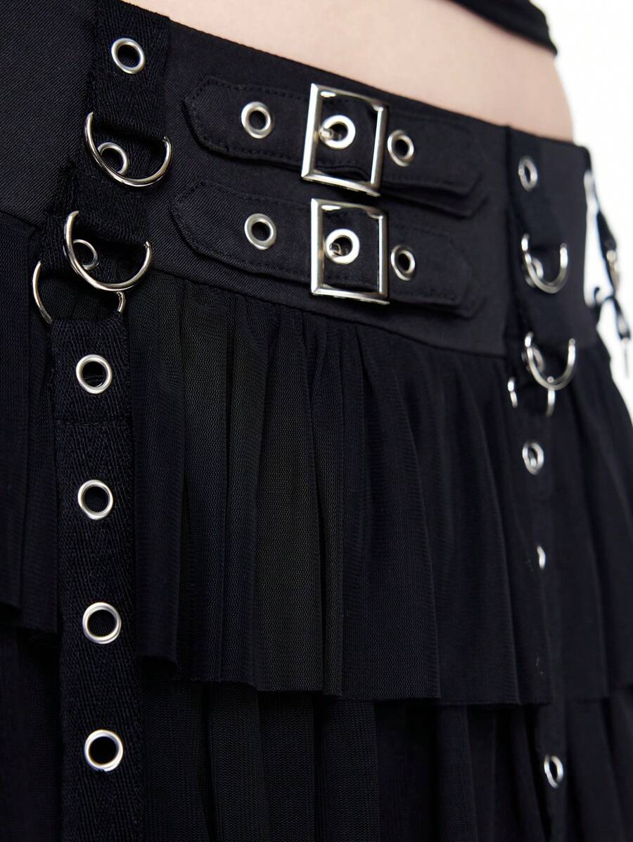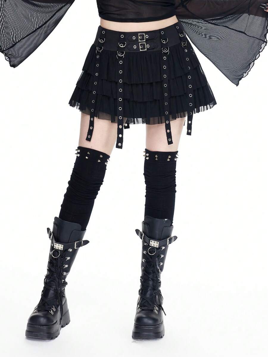 Punk Goth Eyelet Lace Trim Multi-Layer Women Mini Skirt