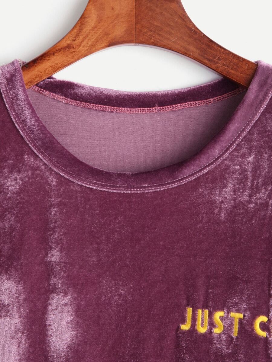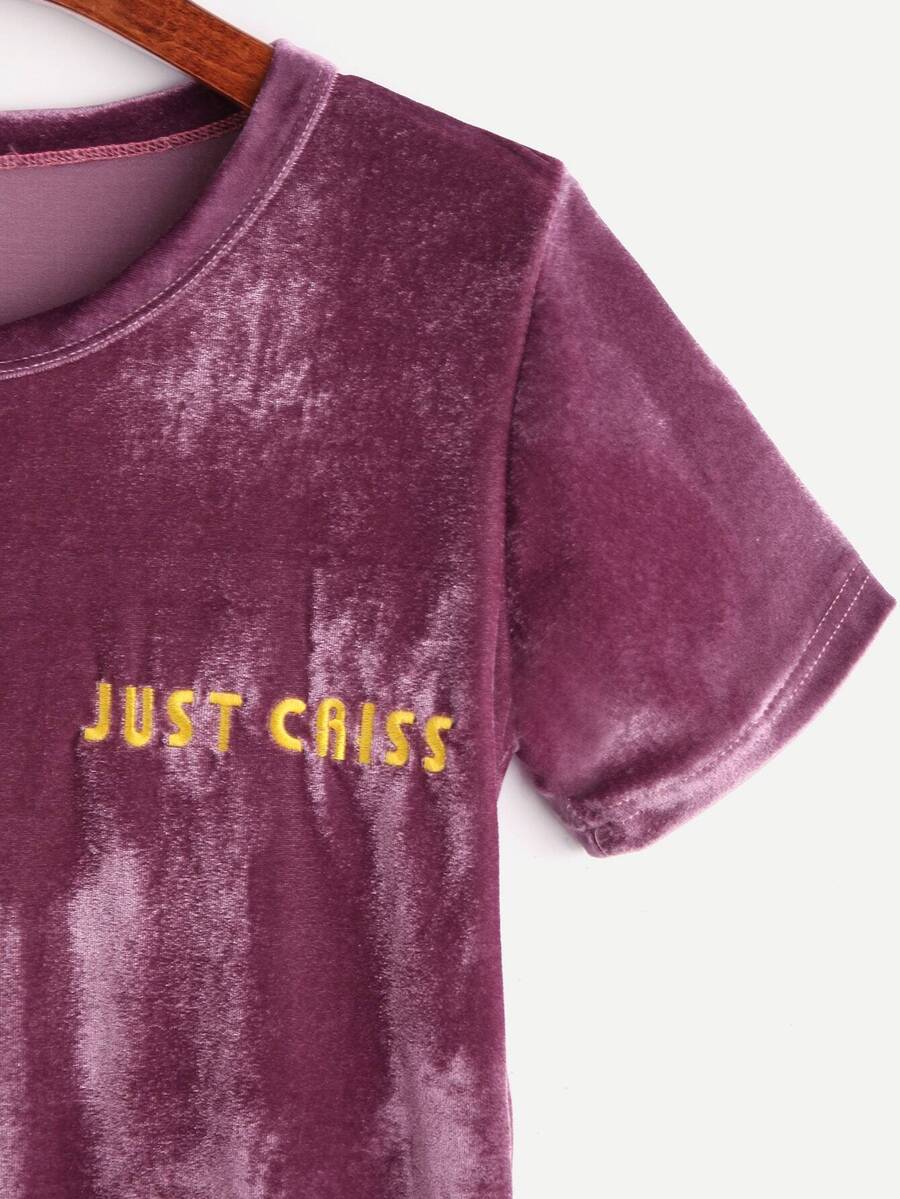 Purple Velvet Letter Embroidered T-shirt